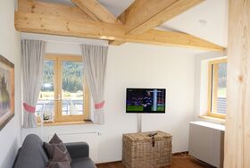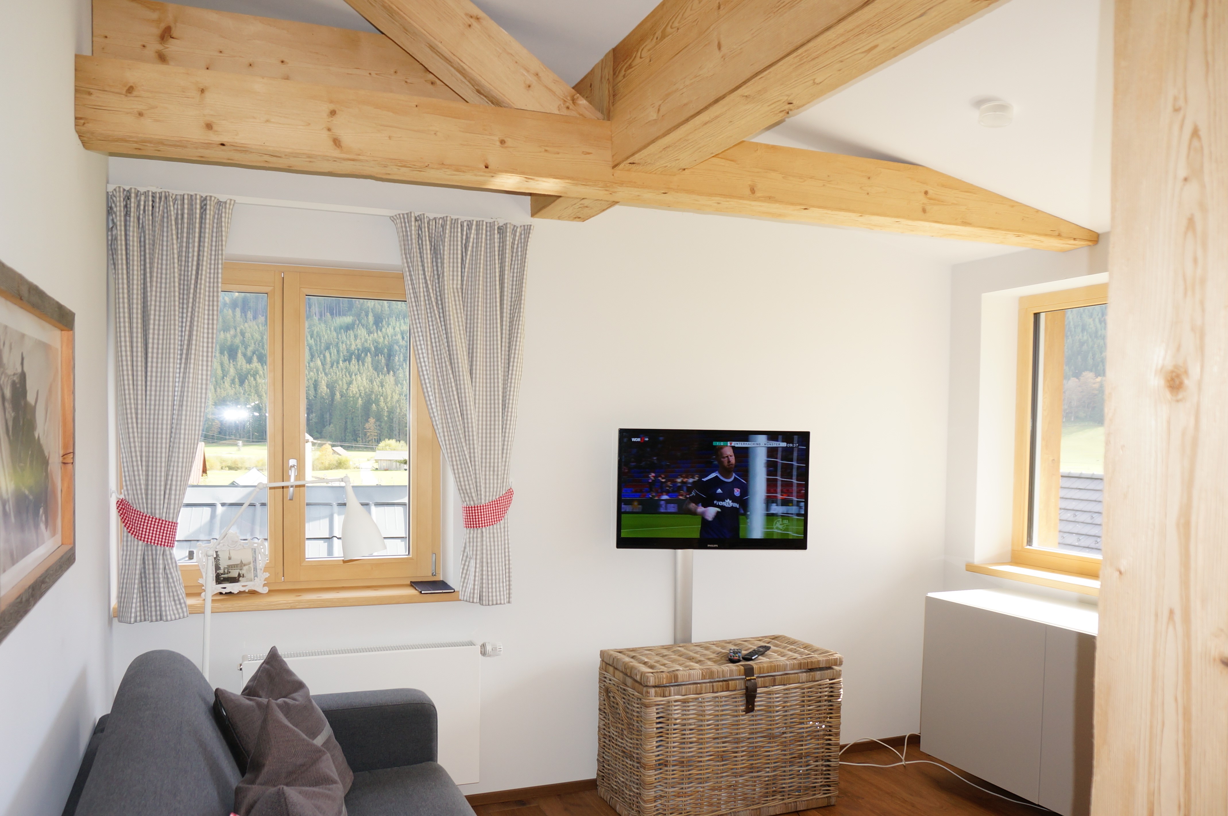 Unser Nichtraucherhaus liegt in vollkommener Ruhelage mit freiem Blick über die Wiesen zum Gosaukamm. Alle Wohnungen sind voll ausgestattet mit südseitigem Balkon oder Terrasse.