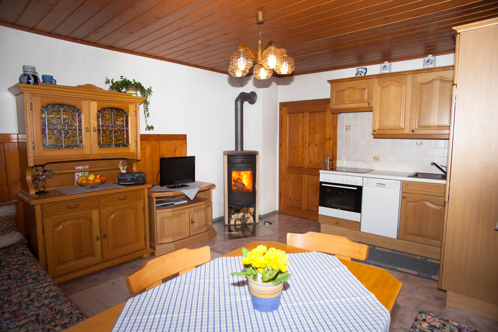 Eine voll eingerichtete Wohnküche, Bad und WC befinden sich im Erdgeschoß. Über eine etwas steile Stiege erreicht man im Obergeschoß mit den Schlafzimmern.