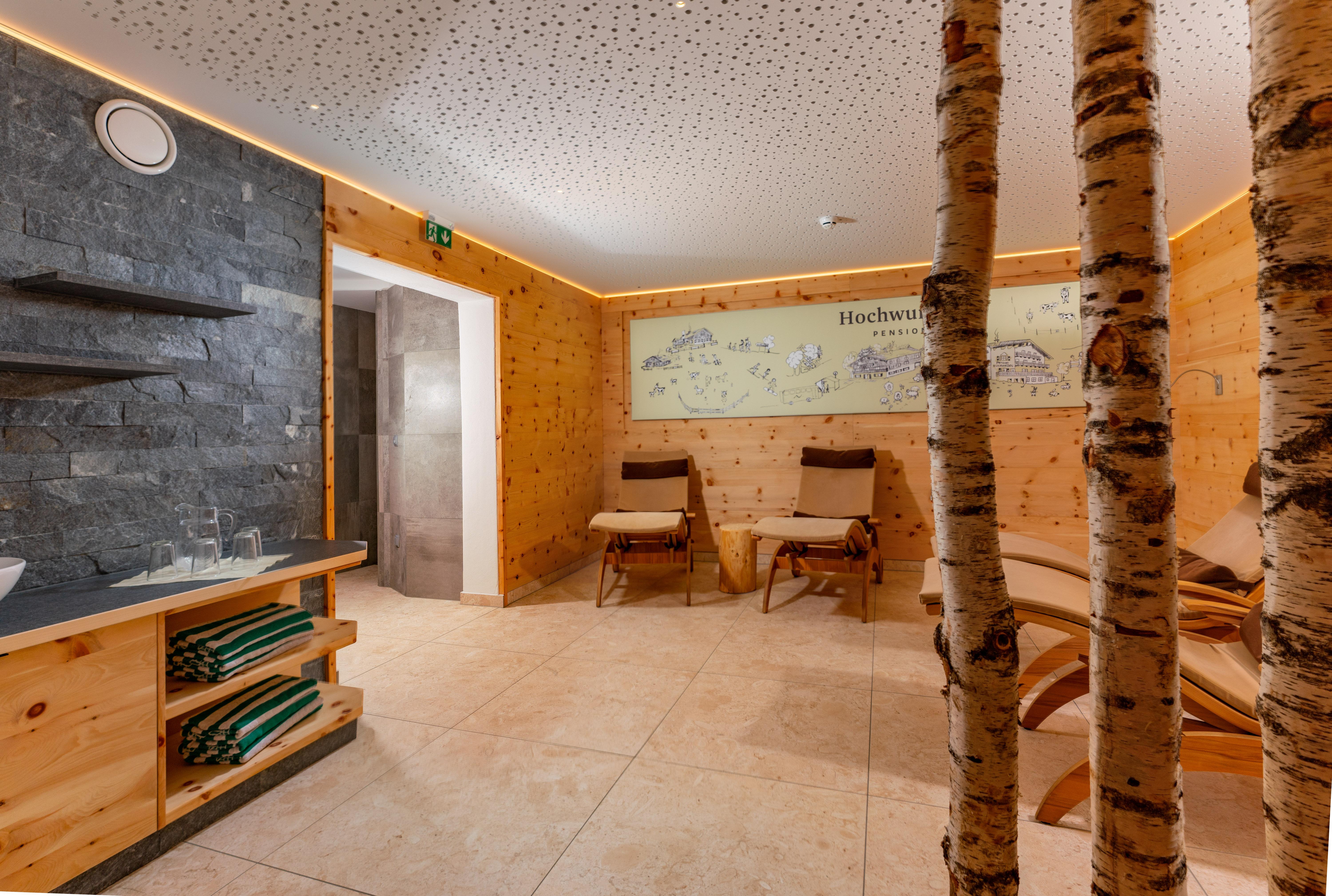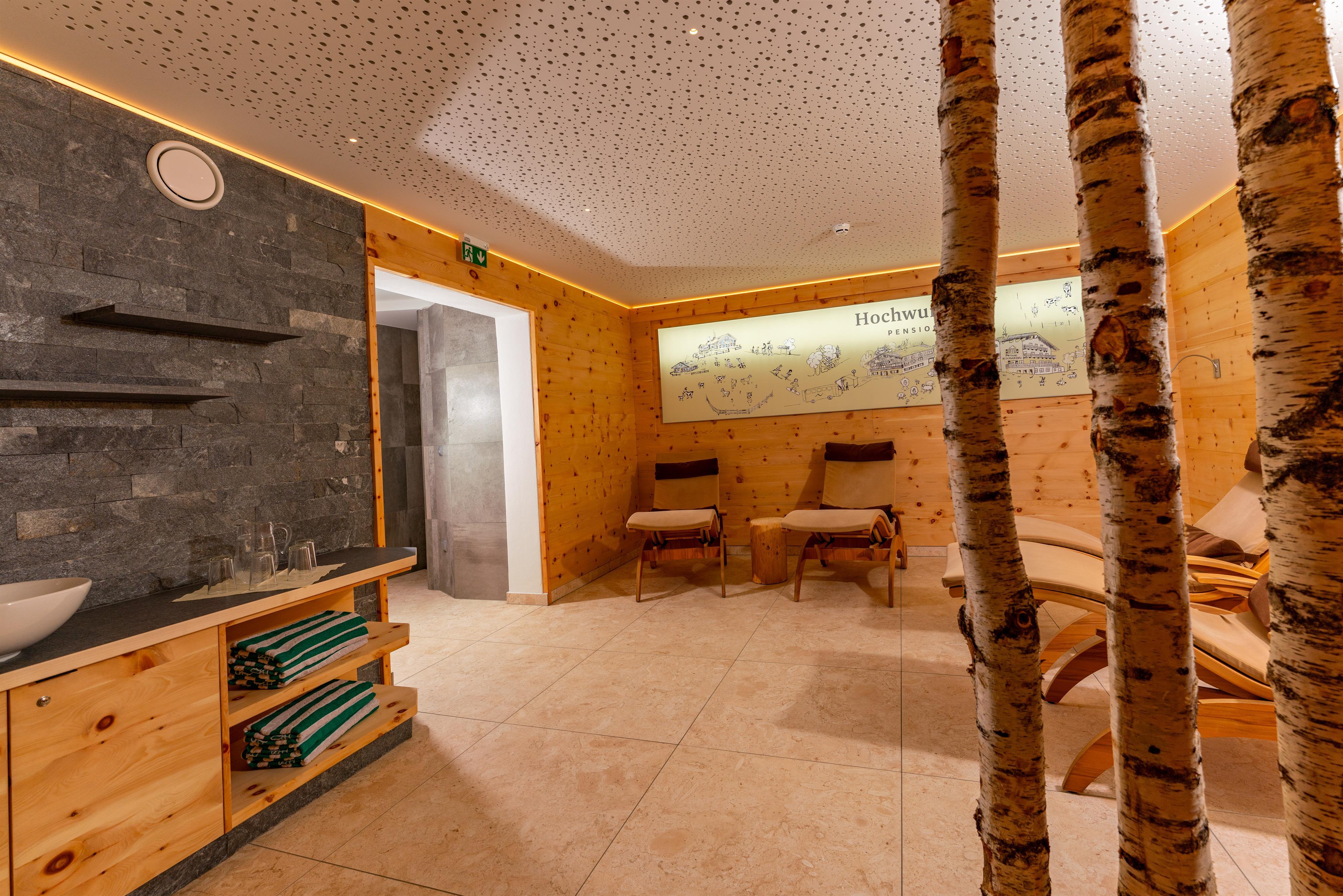 Um Ihnen eine sorgenfreie Zeit abseits vom Alltagsstress zu bieten, haben wir Ihnen einen Wellness-Bereich eingerichtet, der zum Schwitzen in der Sauna, zum Wohlfühlen in der Infrarotkabine oder unter der Wellnessdusche und zum Entspannen in unserem Ruheraum einlädt.