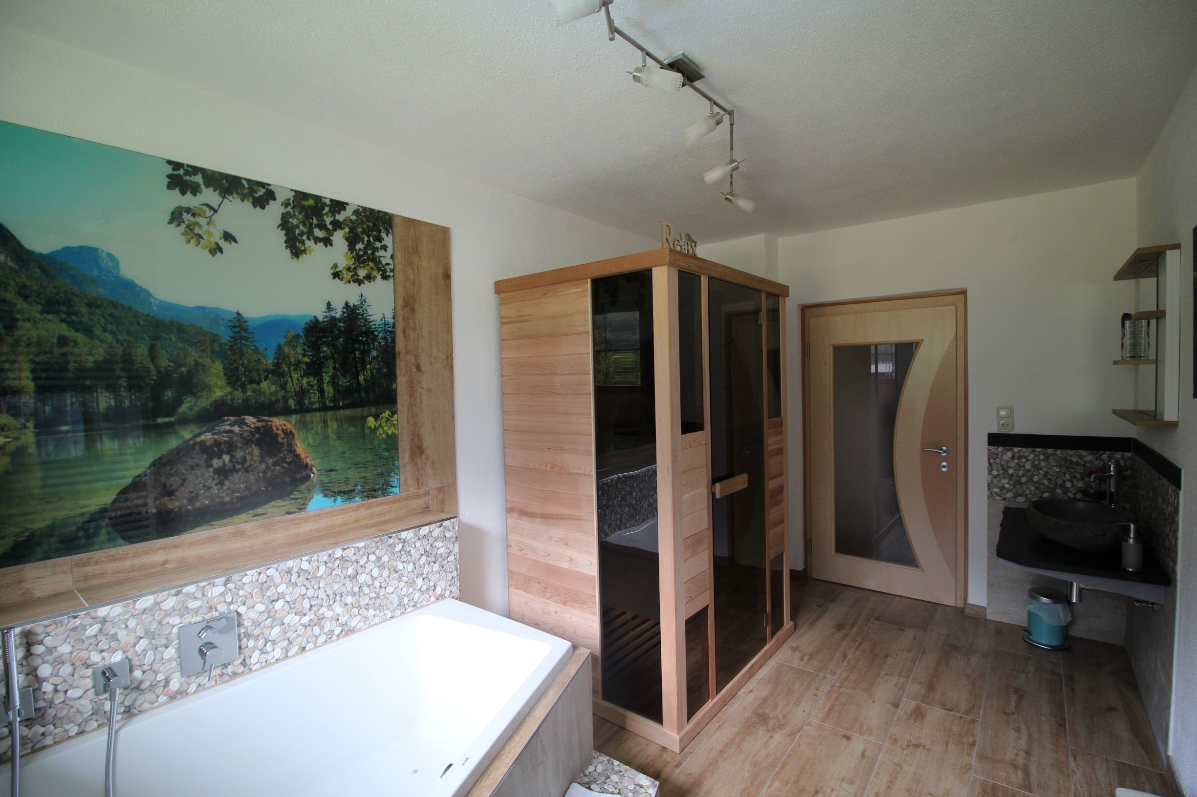 • Ein geräumiges Bad mit Whirlpool und Infrarotkabine