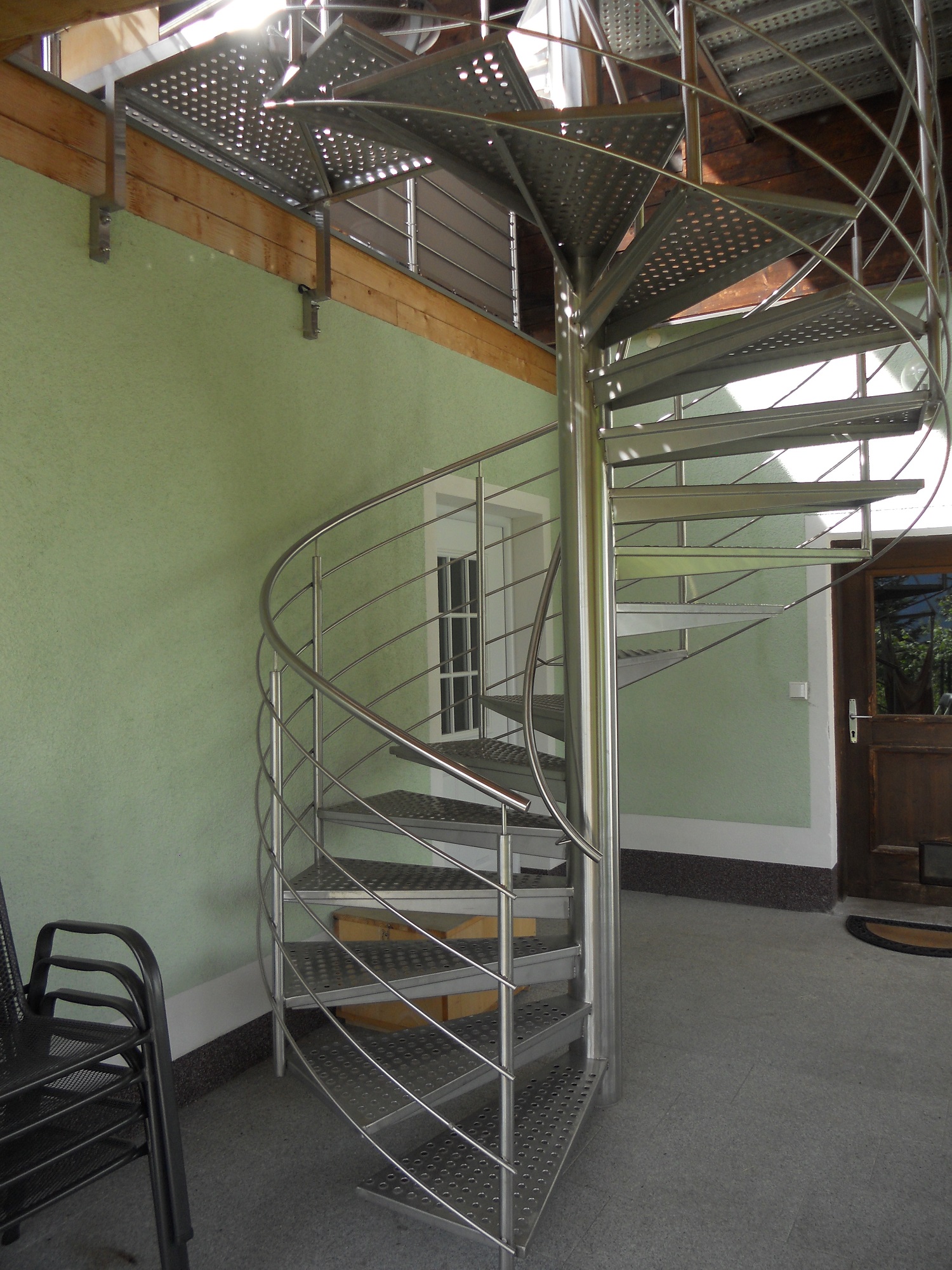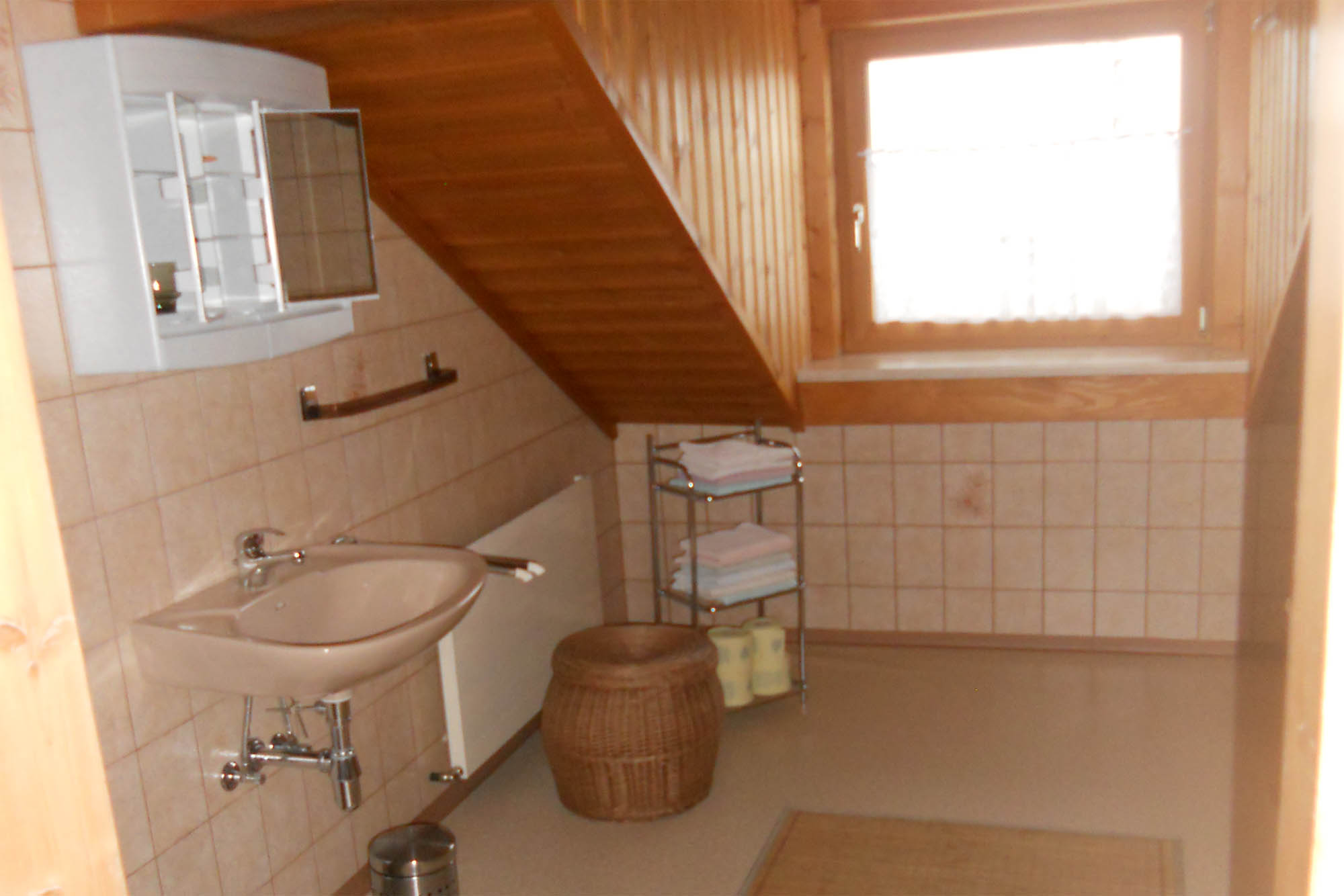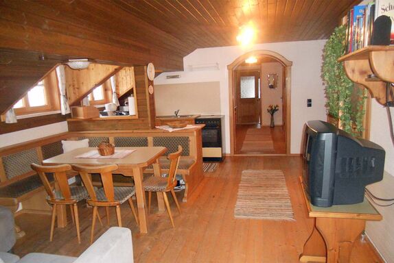 Die Wohnung befindet sich im Dachgeschoß unseres Hauses, die Sie bequem über unseren neu errichteten, seperaten Eingang über eine Wendeltreppe erreichen. Vor dem Eingang der Wohnung befindet sich eine sehr sonnige Terrasse mit wunderschönem Ausblick auf die umliegende Bergwelt. Hier befindet sich wiederum eine Sitzgelegenheit und Liegestühle - zum Relaxen.