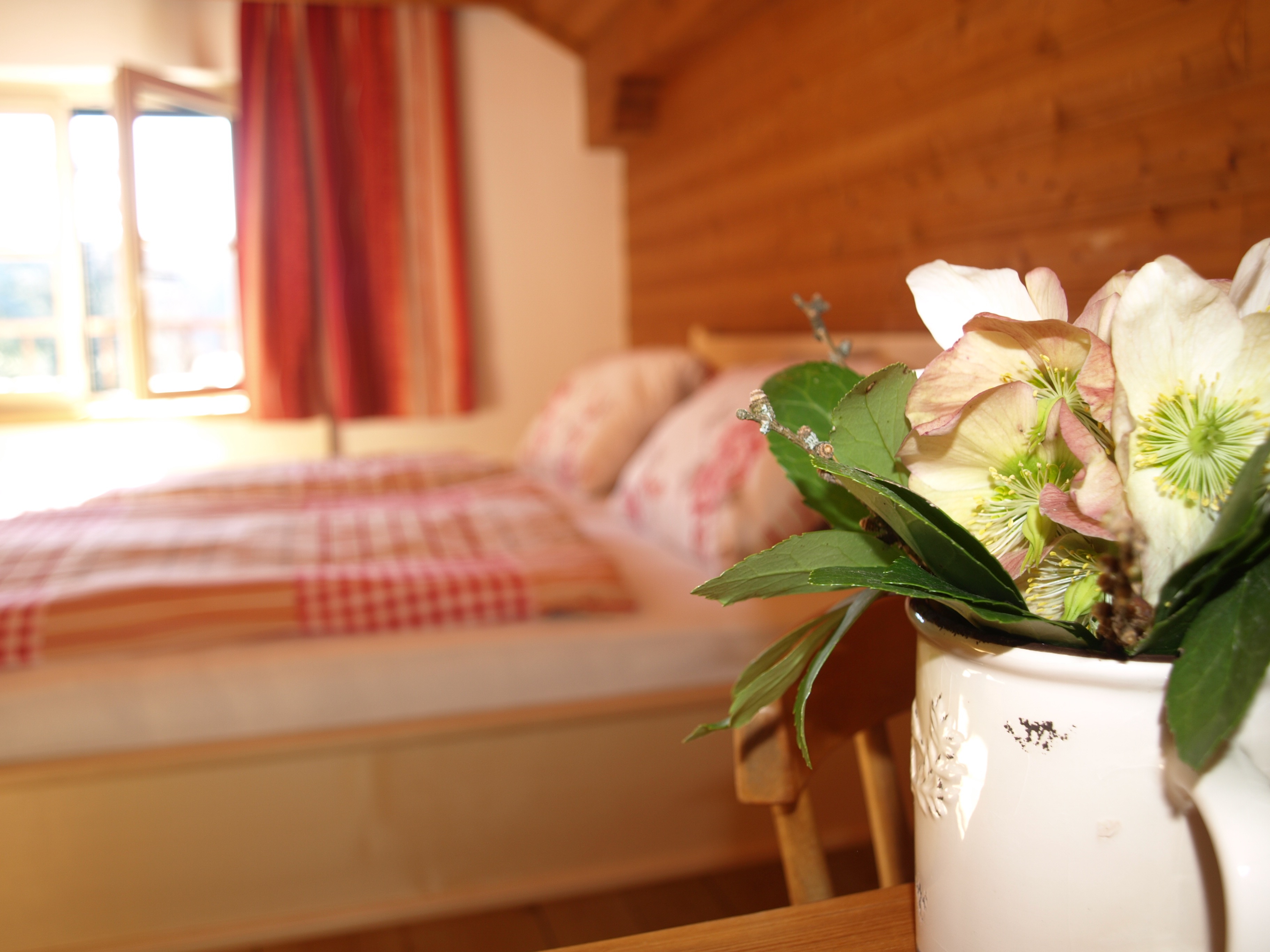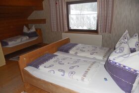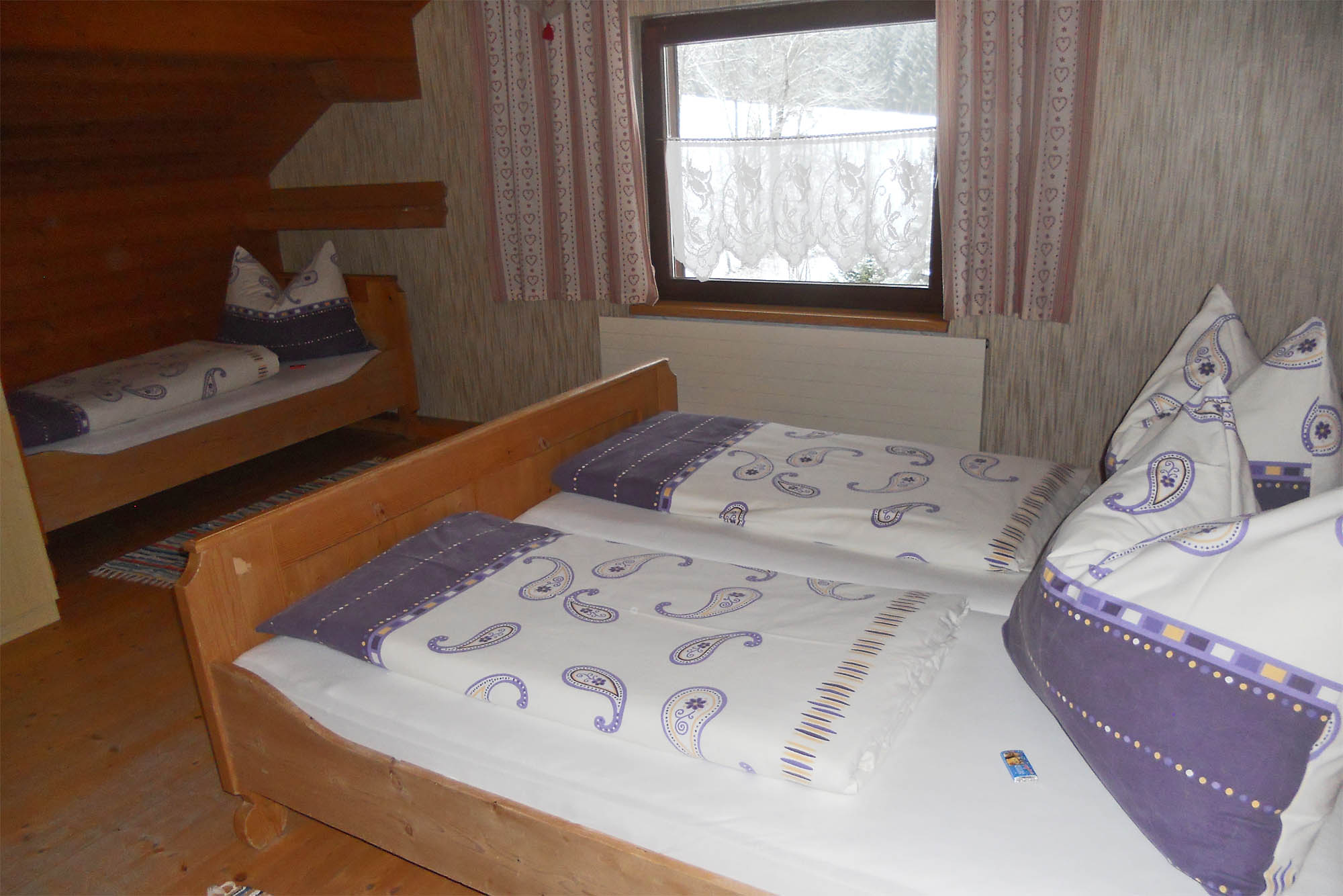 • 2 rustikal eingerichtete Schlafzimmer (ein Zweibett- und ein Dreibettzimmer) und