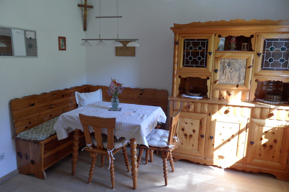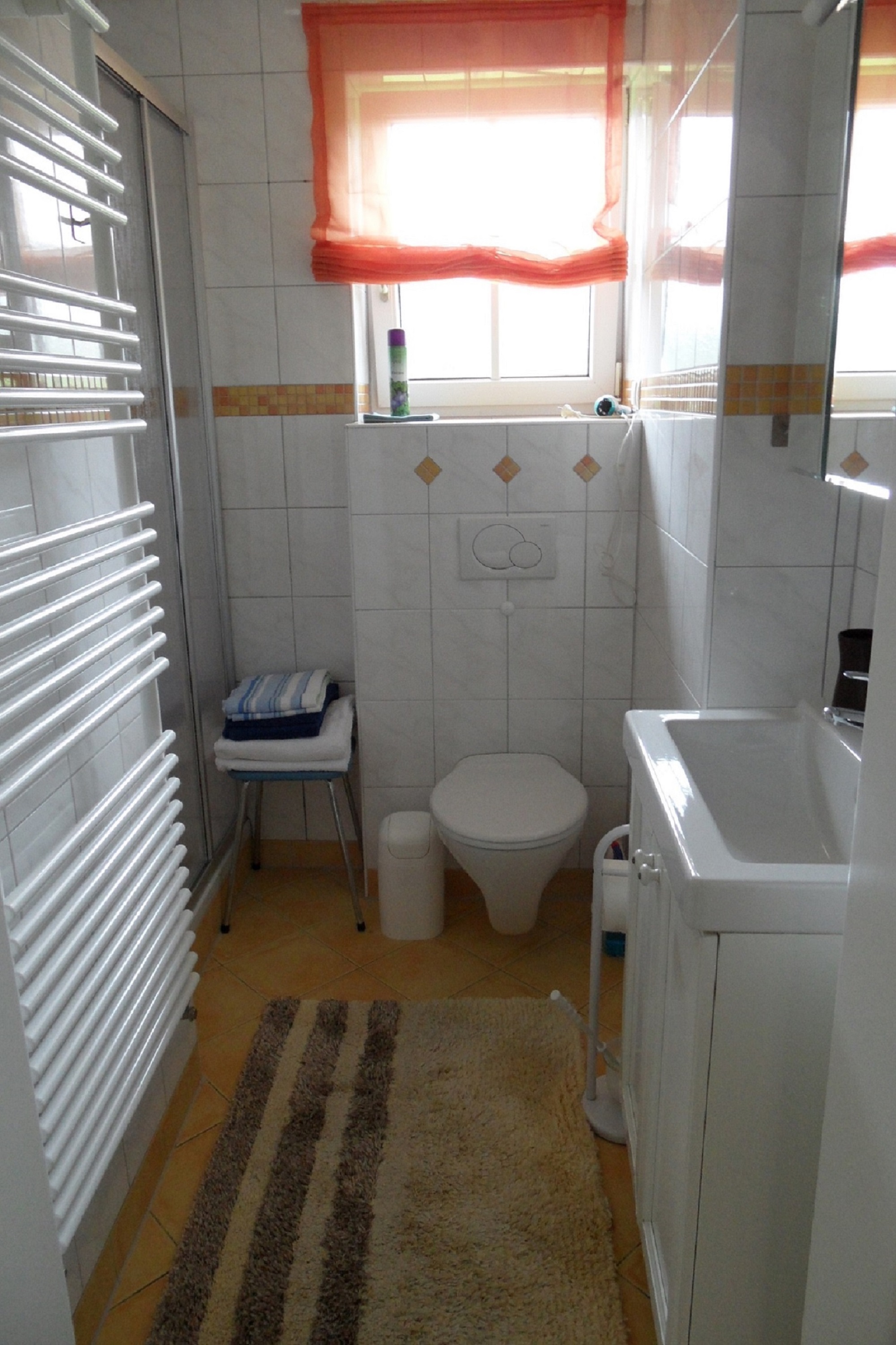 Wir bieten Ihnen eine 70m² große, familienfreundlich ausgestattete Ferienwohnung im ersten Stock mit eigenem Balkon. Es erwartet Sie eine komplett eingerichtete Wohnküche, Wohnzimmer mit ausziehbarer Couch, SAT-TV, Radio, zwei Schlafzimmer mit Doppelbett , Dusche/WC ausreichend Tisch- und Bettwäsche. Genügend Parkplatz ist natürlich vorhanden.