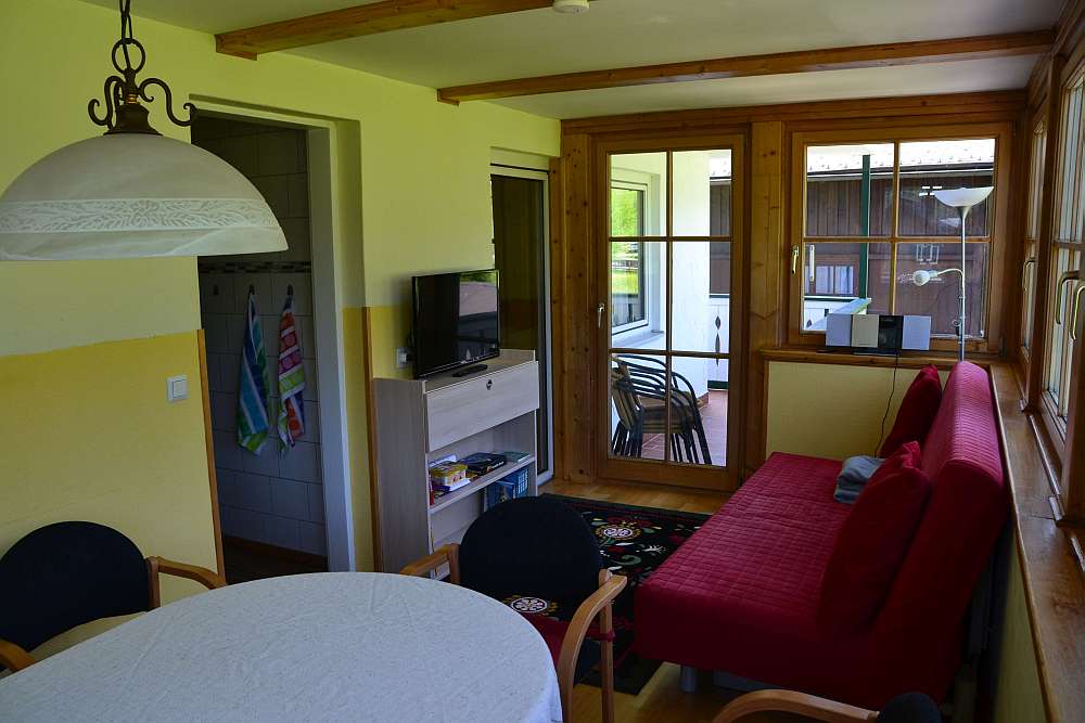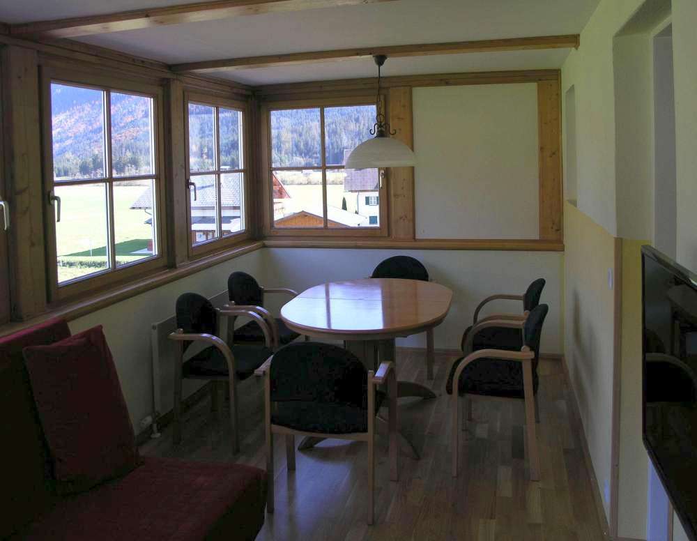 Die Nichtraucher - Ferienwohnung ist für 2 - 7 Personen ausgestattet und bietet eine neue, moderne Küche mit Geschirrspüler, Induktionskochfeld, Backrohr, Mikrowelle und Kühlschrank mit Gefrierfach. Eine große Veranda mit Panoramablick und Sat-TV lädt zum gemütlichen Zusammensein ein. Die Wohnung verfügt über ein modernes Badezimmer, zwei Balkone mit Blick talauswärts Richtung Kalmberg und Sarstein und zwei Schlafzimmer mit jeweils einem Doppelbett und einem Einzel- bzw. Stockbett. Haarföhn und WLAN vorhanden. 2.Obergeschoß ohne Lift, Größe: 61,5m2 + 12m2 Balkone.
