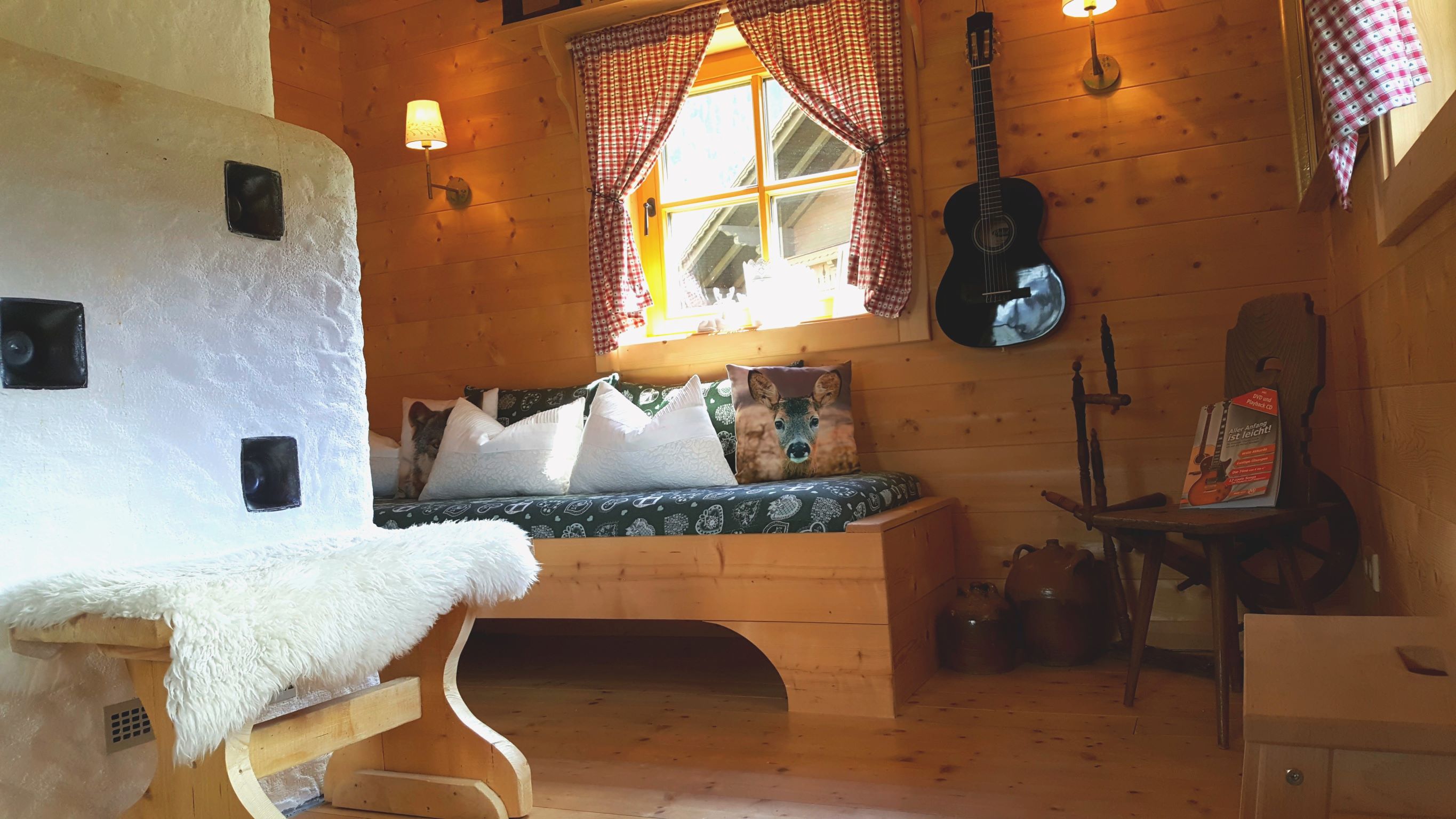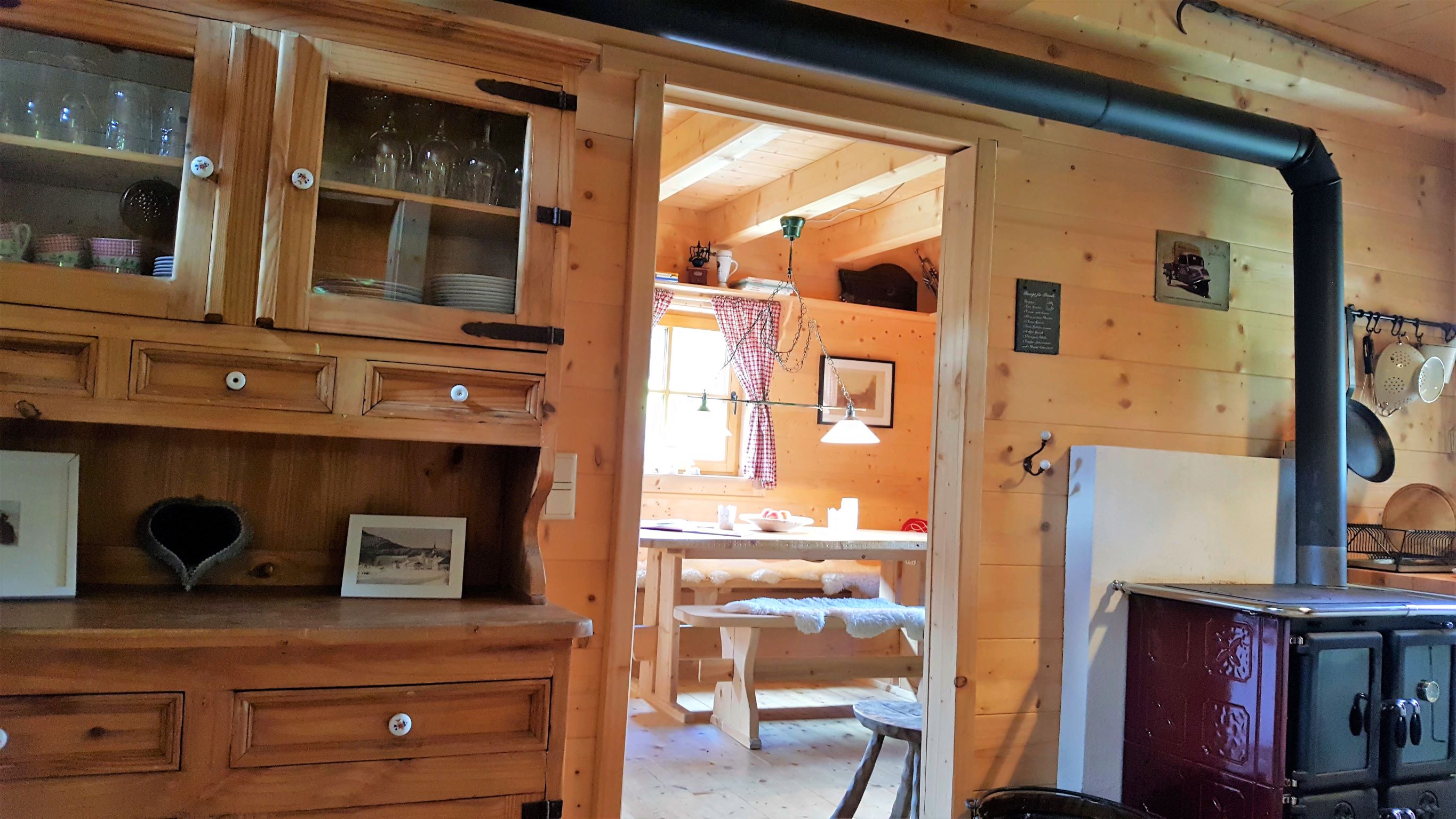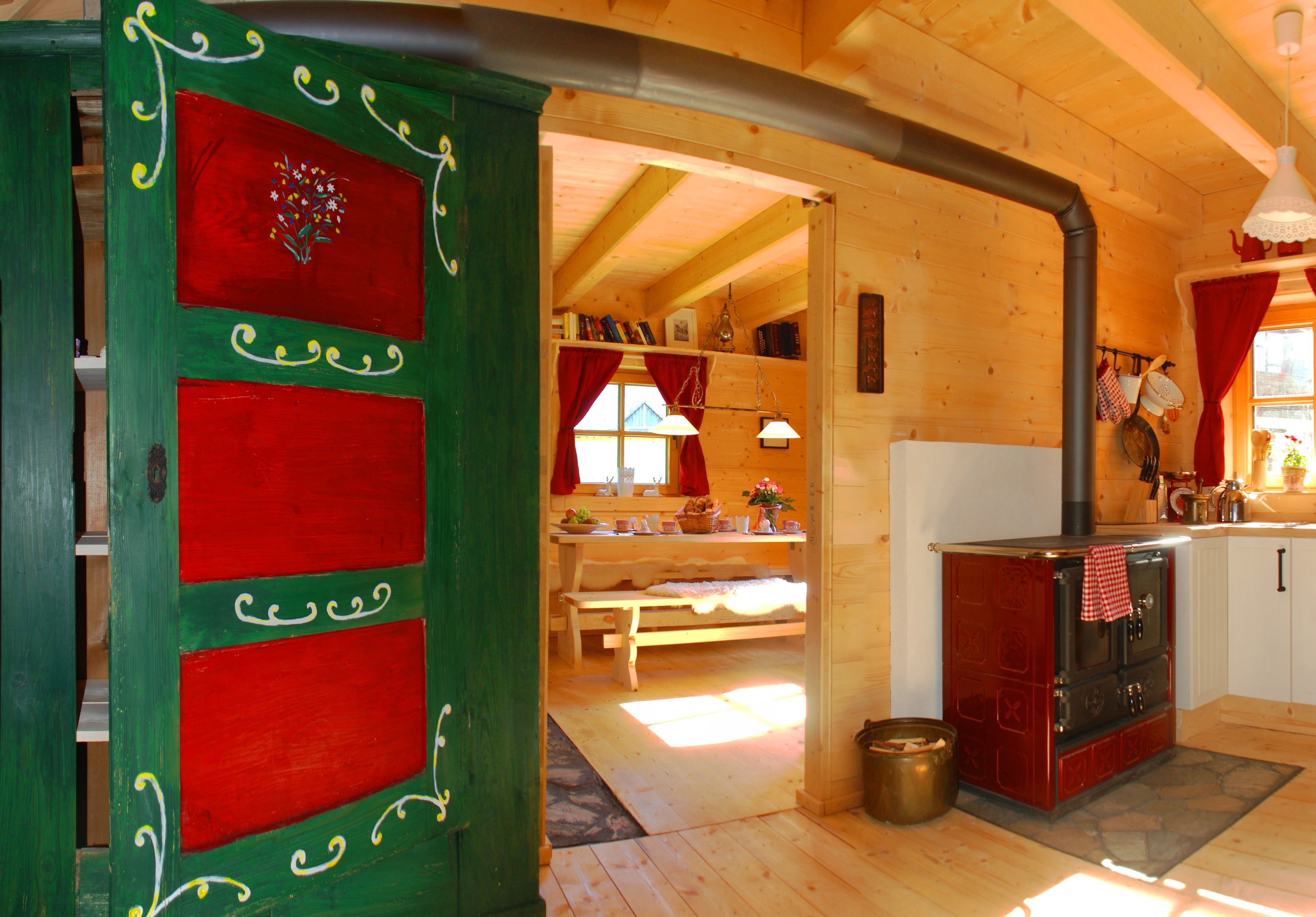 Das Ferienhaus mit traditioneller Holzofen, Holzkamin und alte Bauernmöbel vermittelt ein authentisches Alpenflair, auf moderne Küchentechnik wird trotzdem nicht verzichtet. In der Hütte befinden sich zwei komfortable Badezimmer mit Wellness- Dusche, Badewanne und Sauna, die keine Wünsche offenlassen. Drei Schlafzimmer mit je einem Doppelbett bieten genügend Raum für bis zu 6 Erwachsenen und einem Kleinkind (unter 2 Jahre im Zustellbettchen). Die Küche ist ausgestattet mit einem urigen Holzofen mit Backrohr jedoch auch ein elektrokochherd und Ofen, Kaffeemaschine, Toaster, Heißwasserkocher, Spülmaschine und einem Retrokühlschrank.