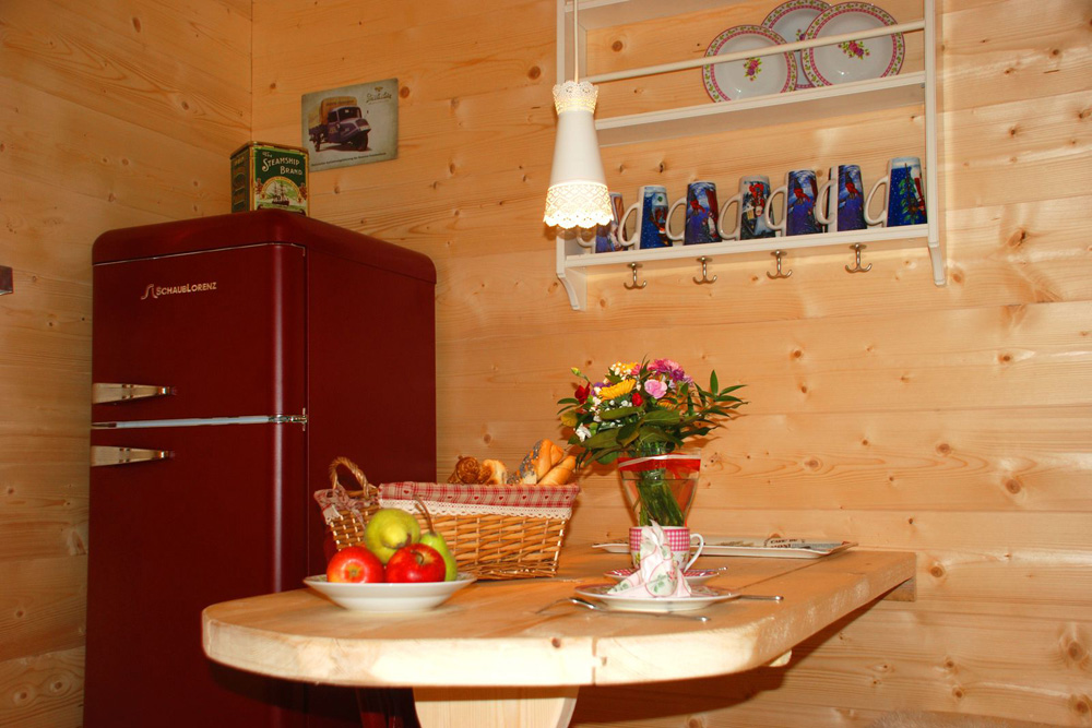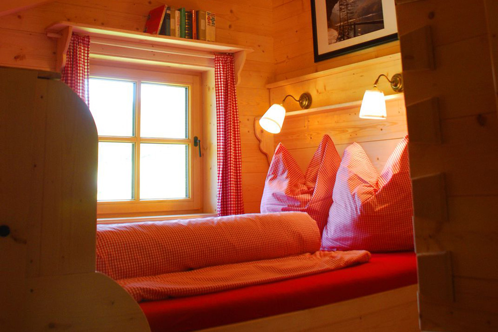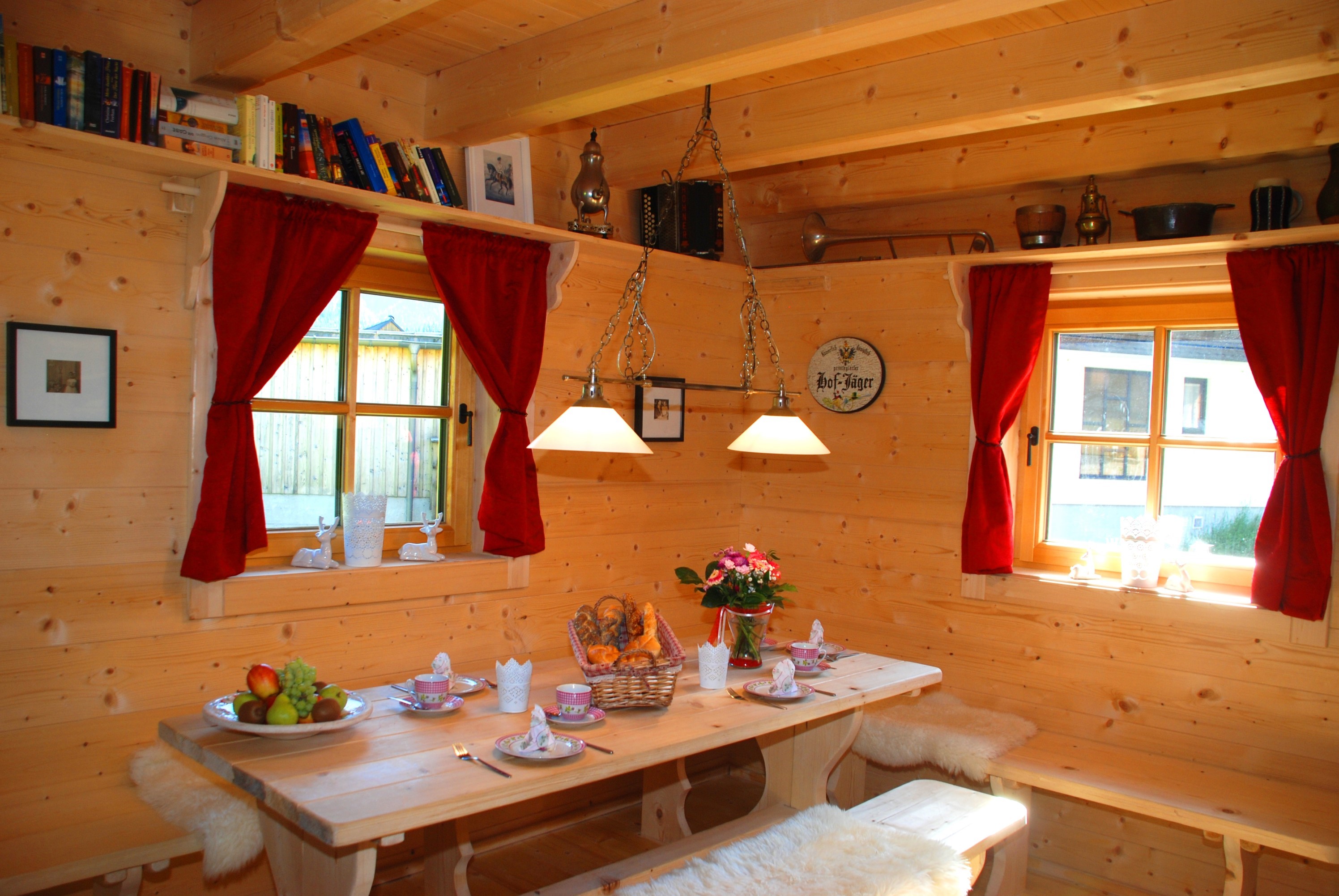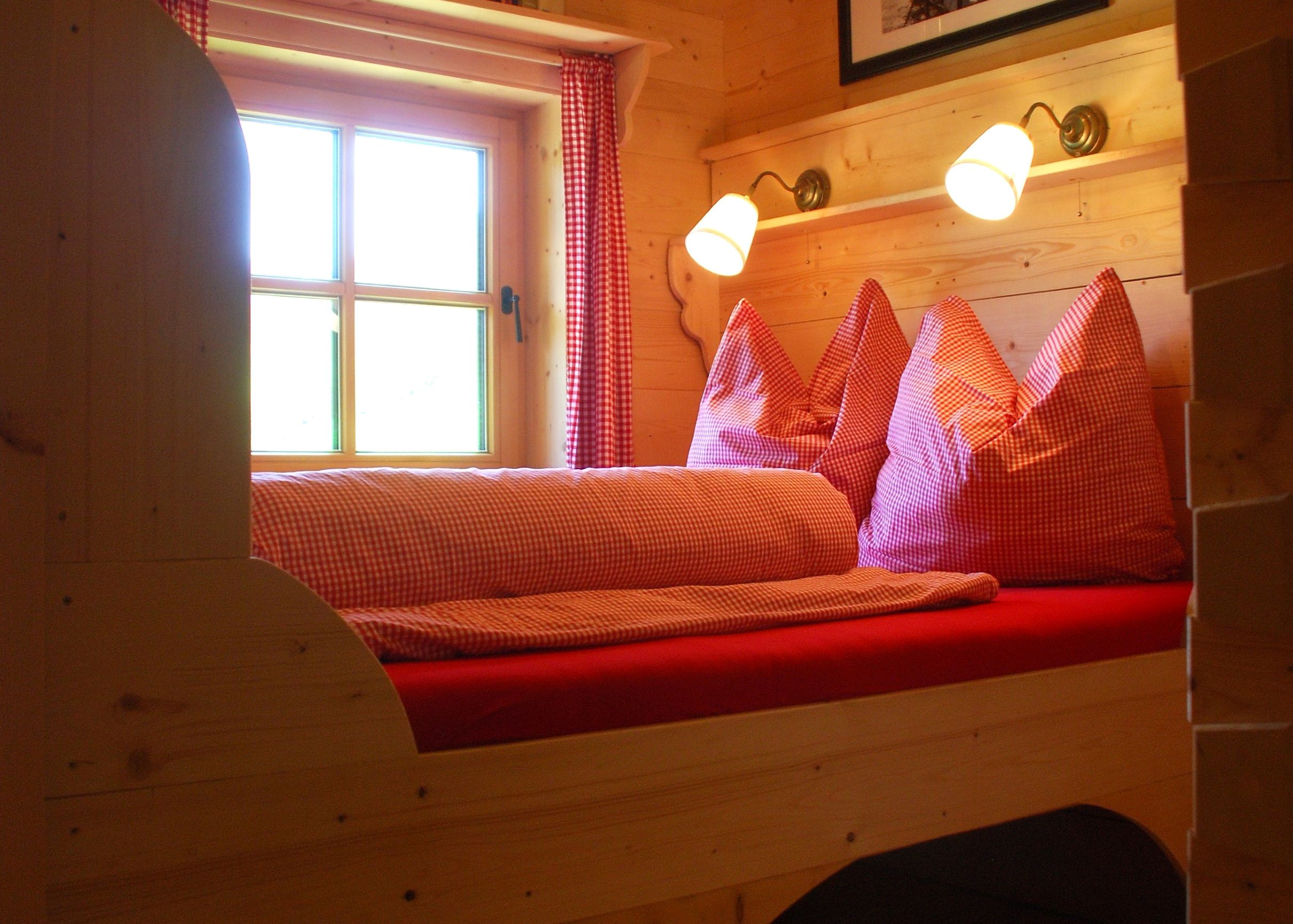 Das Ferienhaus mit traditioneller Holzofen, Holzkamin und alte Bauernmöbel vermittelt ein authentisches Alpenflair, auf moderne Küchentechnik wird trotzdem nicht verzichtet. In der Hütte befinden sich zwei komfortable Badezimmer mit Wellness- Dusche, Badewanne und Sauna, die keine Wünsche offenlassen. Drei Schlafzimmer mit je einem Doppelbett bieten genügend Raum für bis zu 6 Erwachsenen und einem Kleinkind (unter 2 Jahre im Zustellbettchen). Die Küche ist ausgestattet mit einem urigen Holzofen mit Backrohr jedoch auch ein elektrokochherd und Ofen, Kaffeemaschine, Toaster, Heißwasserkocher, Spülmaschine und einem Retrokühlschrank.