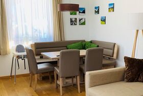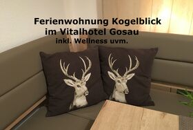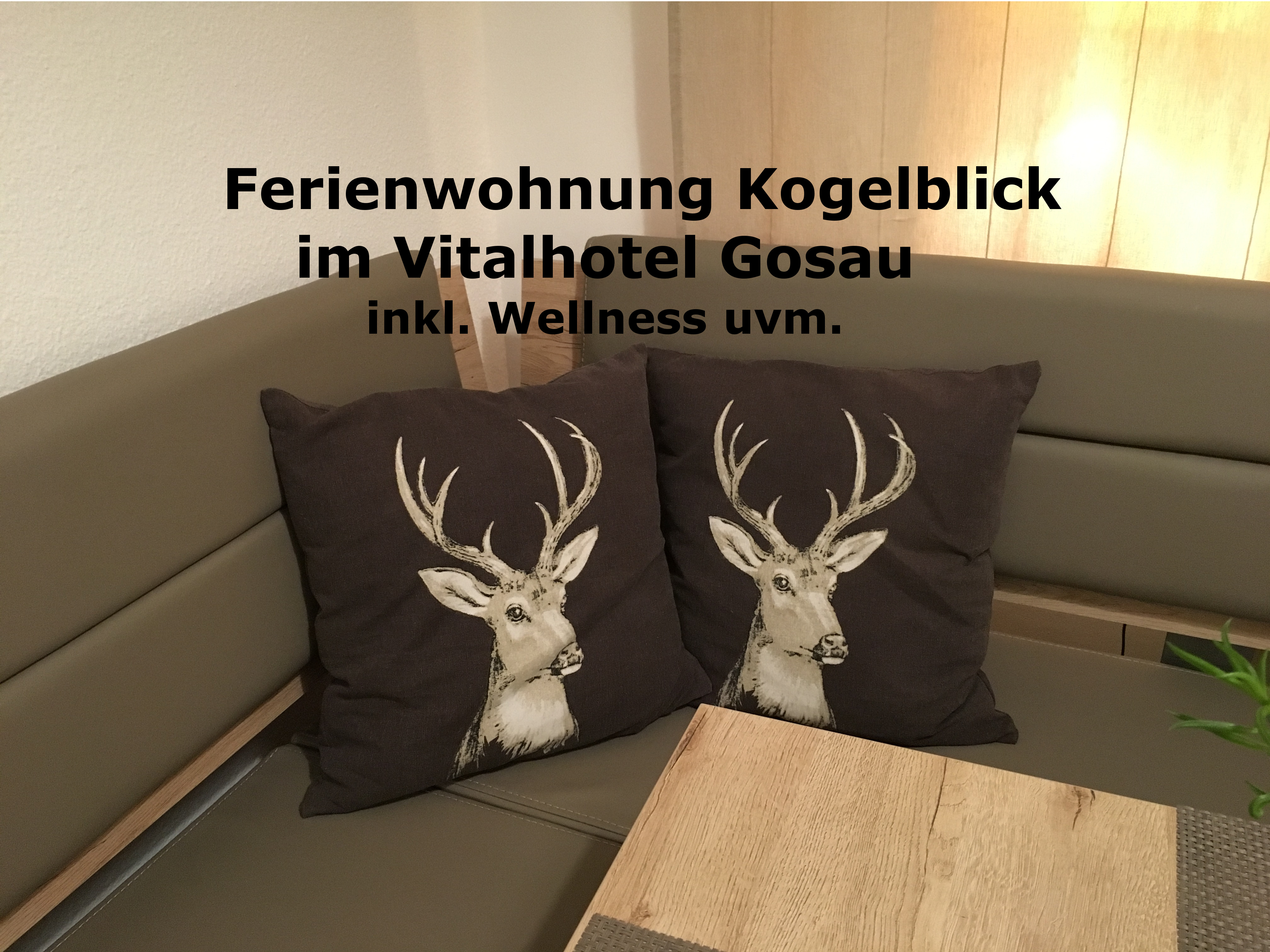 Das Besondere der Ferienwohnungen Kogelblick ist, dass diese sich im Vitalhotel Gosau befinden und Hoteleinrichtungen wie die Wellnessoase (mit Sauna, Sanarium, Infrarotkabinen, Ruheräume und einen kleinen Pool), Spielezimmer, Spielplatz, Fitnessraum, Tischtennis, Skistall, Skishuttle uvm. kostenlos genutzt werden können. Sie können sich in der voll ausgestatteten Küche der Ferienwohnung selbst versorgen oder das Hotelrestaurant und die gemütliche Bar nutzen (Frühstück, Halbpension bzw. im Sommer All-Inklusive-Paket sind direkt im Hotel vor Ort buchbar).