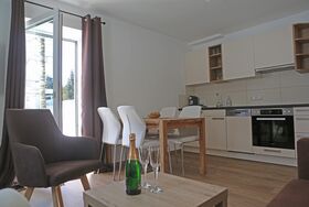 Sie verfügt über 2 Schlafzimmer mit je einem Doppelbett und einem Schrank bzw. Kasten. Im Wohnbereich finden sie eine kleine Sitzcouch, einen Eßbereich und eine Küchenzeile (Kühlschrank, Geschirrspüler, Backrohr, Ceran-Kochfeld, Wasserkocher, Nespresso Kaffeemaschine) vor.