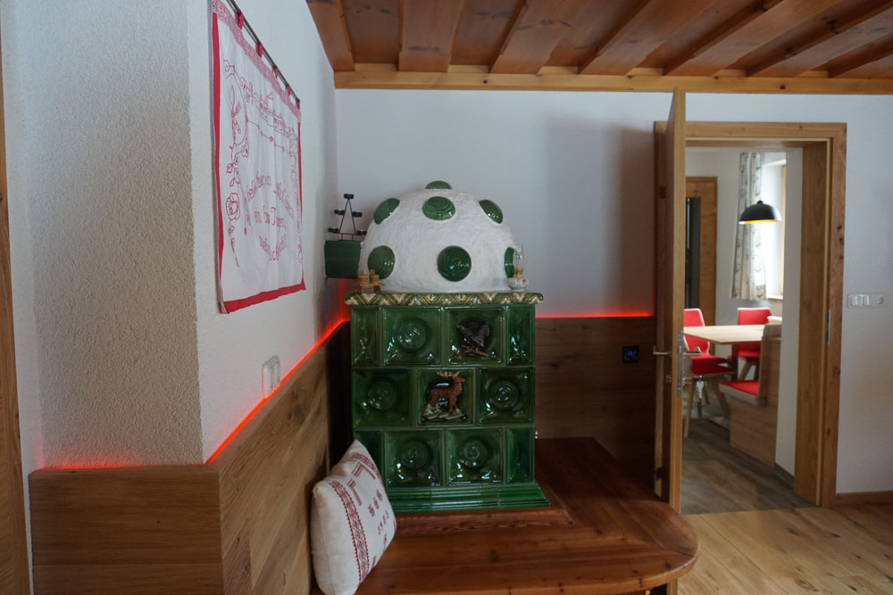 Badezimmer und WC sind getrennt, Vorhaus mit Garderobe, Trockenraum für die Schischuhe usw. Eine Bauernstube mit Kachelofen läd zum gemütlichen Beisammensein ein.
