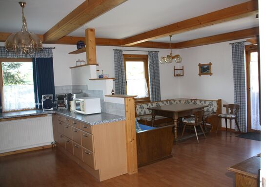 Wir bieten neben einem großen Garten mit Grillmöglichkeit, Parkplatz vor dem Haus und kleinem Kinderspielplatz einen überwältigenden Blick auf die Bergwelt. Unzählige Wandermöglichkeiten in allen Schwierigkeitsstufen warten direkt vor dem Haus auf dich.