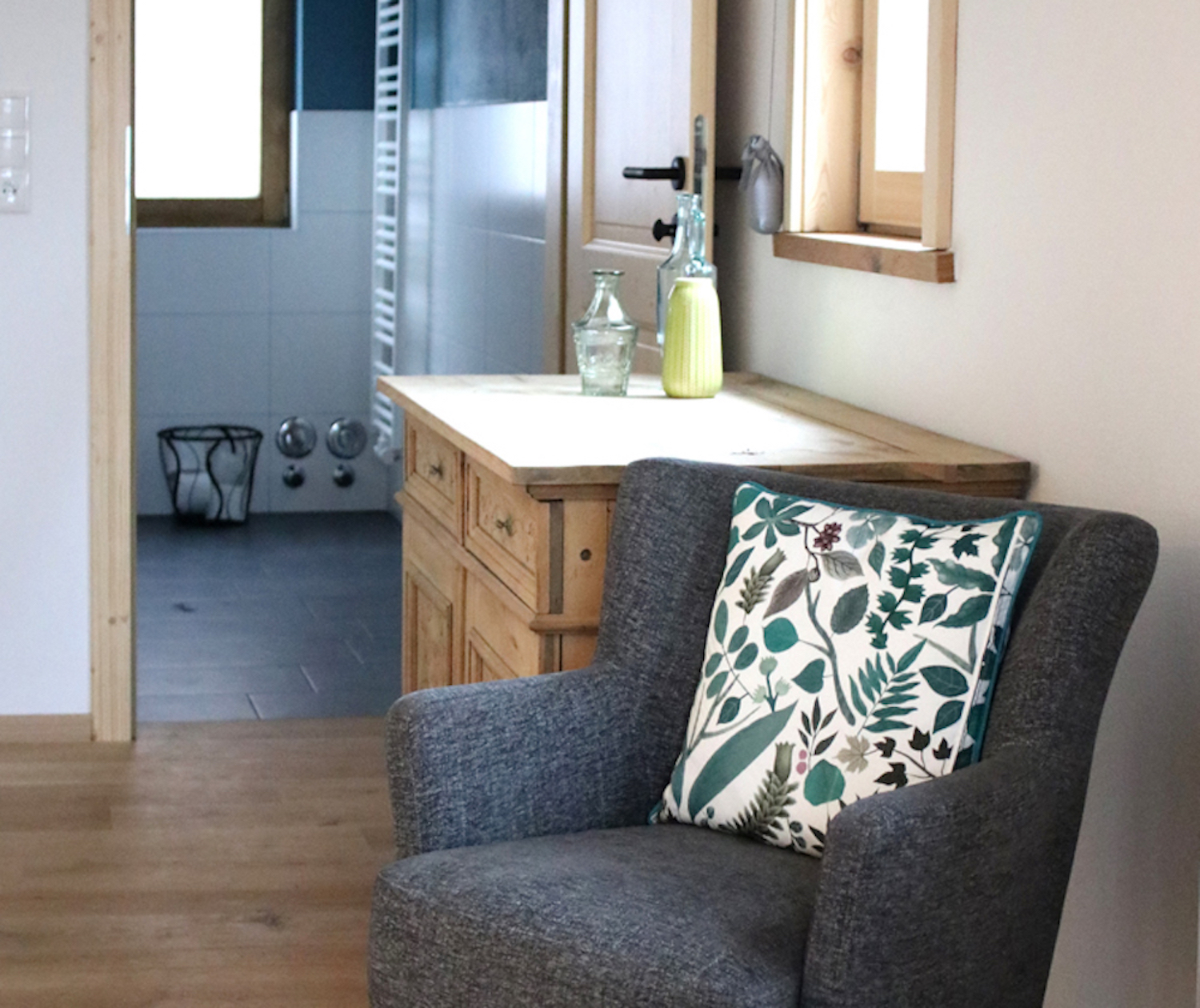 Das gemütliche und hyggelige Quartier für bis zu 3 Gästen ist unser preisgünstigstes. Der barrierefreie Zugang direkt vom Parkplatz bietet komfortablen Einlass, natürlich rollstuhlgerecht. Der Garten ist ebenfalls direkt vom separaten Eingang erreichbar.