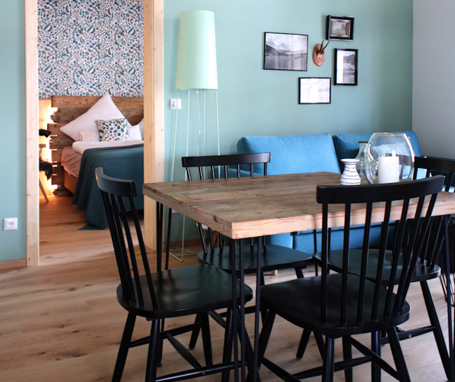 In 40 bis 121 m² großen Quartieren genießt Ihr mit bis zu 8 Personen das malerische Dachstein Salzkammergut. Unsere Innenarchitektin Janka hat mit viel Herzblut aus jedem Raum ein kleines Kunstwerk gemacht. Bequeme Boxspringbetten, biozertifizierte Wand- und Deckenfarben, Eichenholzböden, Altholzverzierungen aus der Region und top ausgestattete Küchen sorgen für Komfort mit Alpencharme. Für größere Events oder Incentives bietet das gesamte Dachstein 7 für bis zu 44 Gäste Platz.