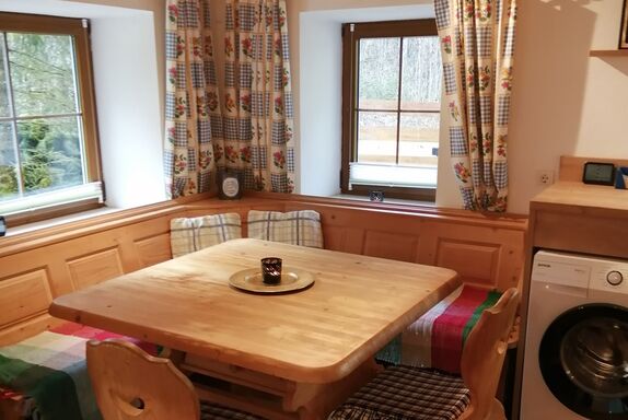 Die Unterkunft zeichnet sich durch seine ruhige Lage und den großen Garten mit Spielturm und Trampolin aus. Die vollmöblierte, neu renovierte Küche im ländlichen Stil ist mit dem Kachelofen aus Großmutters Zeiten das Herzstück des Hauses.