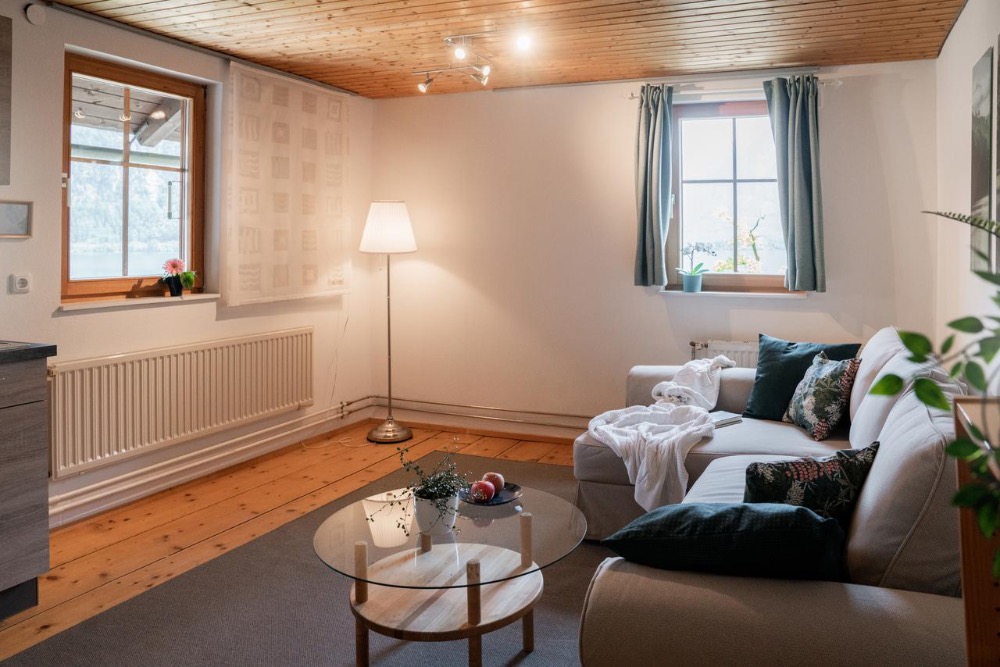 Das Studio ist für Paare oder auch gemeinsam reisende Freund*innen genau das Richtige. Das großzügige, seeseitig gelegene Wohnzimmer bietet Platz zum gemeinsamen Essen und entspanntem Verweilen. Vom gemütlichen Wintergarten und dem Balkon können Sie beim Frühstück oder nachmittäglichen Kaffee das Treiben auf der Seepromenade beobachten. Die örtliche Bäckerei, welche herrlich frisches Gebäck und hausgemachte Kuchen bietet, liegt direkt gegenüber. Sie kommen an und spüren sofort wo Sie sind, denn Sie sind mittendrin: im historischen Ortskern, den See spürbar vorm Haus, Stiegen steigen, den Fels und das Wasser ganz nah.