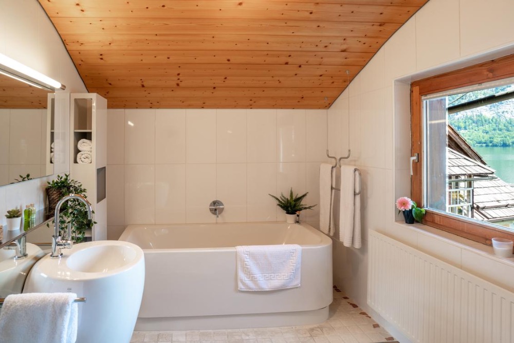 Authentizität auf hohem Niveau: Der See ist in jedem Zimmer spürbar - von Wohn- und Schlafzimmer aus blicken Sie auf den See, aber auch beim Zähneputzen können Sie den Blick über den See schweifen lassen. Und der Tag beginnt schon ganz entschleunigt. Und wenn die Tage wieder kürzer werden und der Herbst in Hallstatt Einzug hält, gibt es kaum etwas entspannenderes als ein Bad in der großzügigen Badewanne als Abschluss eines Tages. Das Wohnzimmer ist mit einer kleinen Küche mit kleinem Kühlschrank, einem Kochfeld, einer Nespresso-Kaffeemaschine und Teekessel ausgestattet, sodass Sie auf ihrem Traumbalkon frühstücken können.