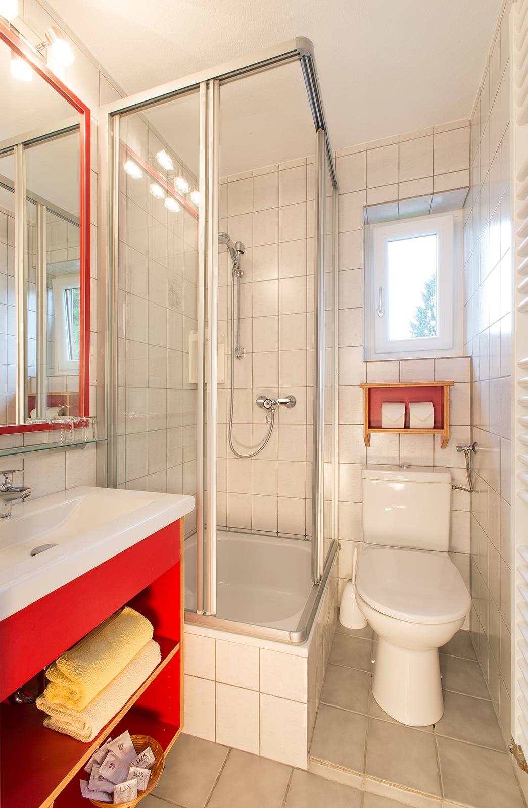 Unser Komfort Doppelzimmer besteht aus einem Schlafzimmer, einem separaten Wohnraum und Dusche/WC.
