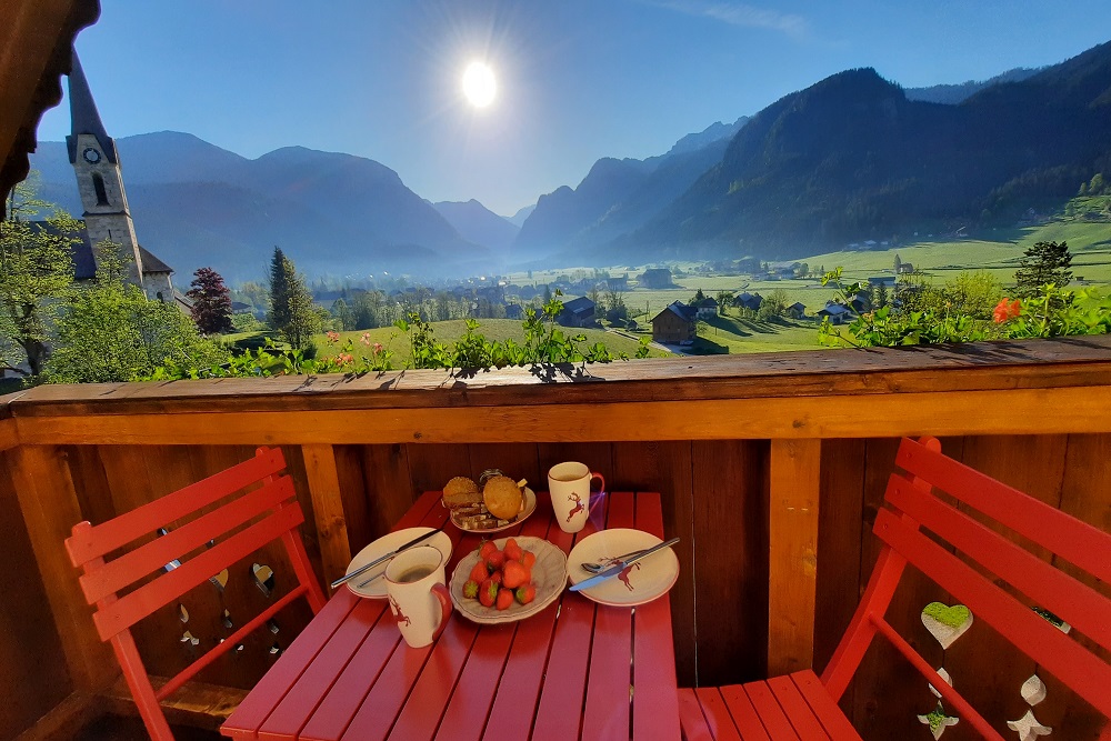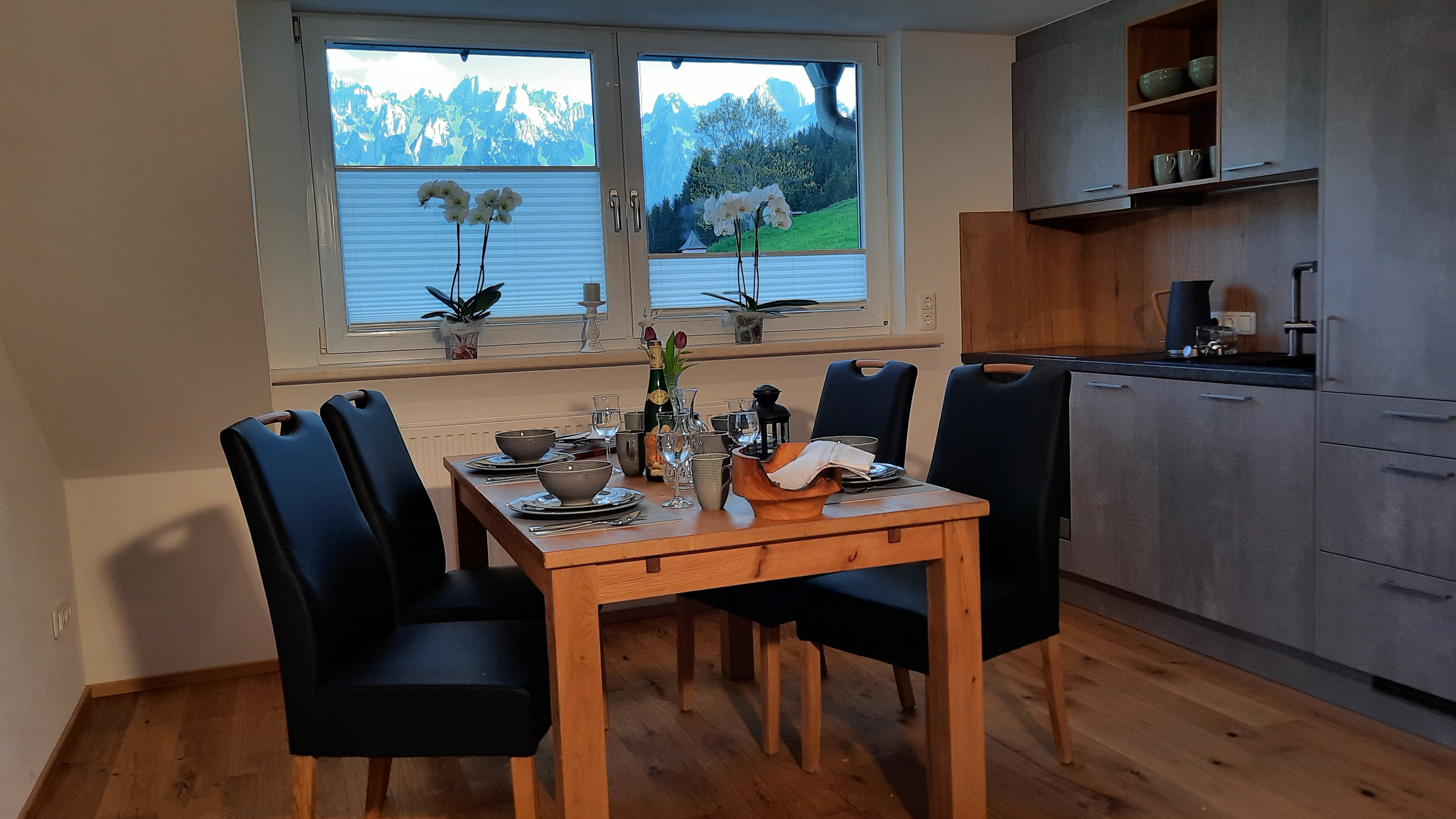 Gemütliche, gehobene Unterkunft, bestens ausgestattet in sonniger ruhiger Lage am Kalvarienberg in Gosau am Dachstein. Genieße die wunderschöne Aussicht über das Gosautal und auf den imposanten Gosaukamm. Die Wohnung ist eine ideale Ausgangslage für Touren, Radfahren, Biken, Wandern, Klettern oder schwimmen im Gosausee, sowie im Winter Skifahren, Langlaufen, Schneeschuhwandern, Tourengehen und Rodeln. Unweit vom Ort Gosau ist es empfehlenswert, einen Ausflug in die nahegelegenen Ortschaften wie Hallstatt, Bad Ischl, St. Wolfgang oder ins steirische Ausseerland zu unternehmen.