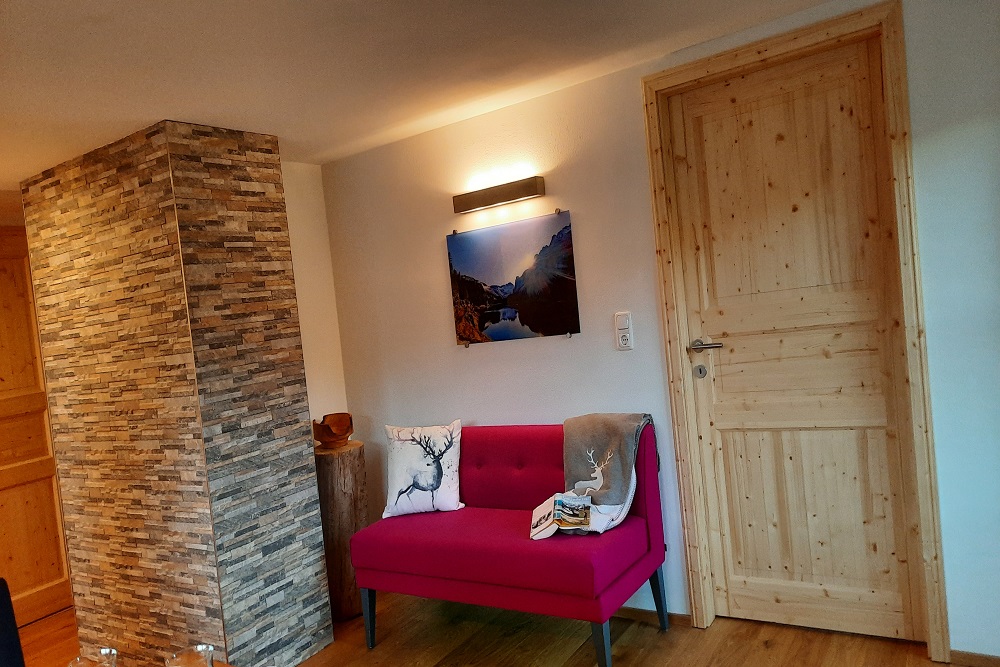 Bestens ausgestattete Ferienwohnung mit wunderschöner Aussicht im 2. Stock des Hauses. Küche mit Esstisch, Couch, Balkon, 2 getrennte Schlafzimmer (für Kinder bis 3J. Gitterbett für Euro 20.- pro Aufenthalt verfügbar) mit Zirbenholzmöbel, TV, Bad mit Walk-In Dusche, WC, Handtücher, Fön. Das Haus bietet einen Fahrradkeller versperrbar. Ganz besonderer Service ist der beheizte Skidepo am Lift.