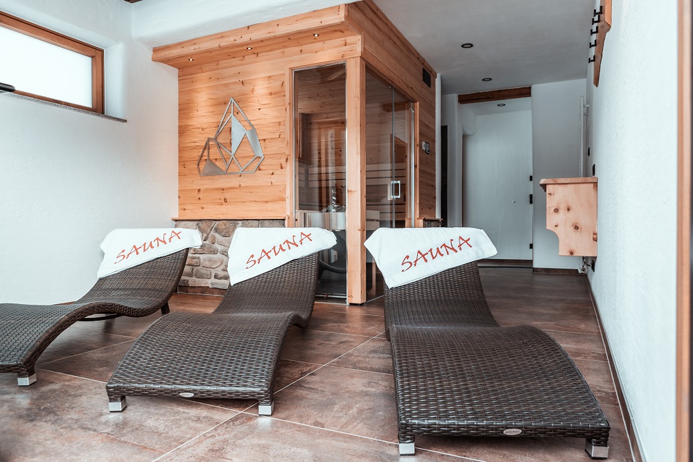 Ein großes Highlight ist der Wellnessbereich mit Sauna, Liegelandschaft und Außen-Whirlpool.
