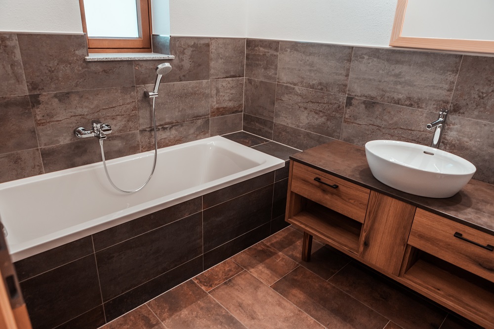 Das im Landhausstil mit modernem Touch eingerichtete Ferienhaus bietet eine komplett ausgestattete Küche, ein Wohnzimmer mit großer Couch und Kachelofen. Die 4 Doppelzimmer im 1 Stock verfügen jeweils über ein direktes Badezimmer. Für das Doppelzimmer im Erdgeschoss befindet sich das Bad neben dem Wellnessbereich.