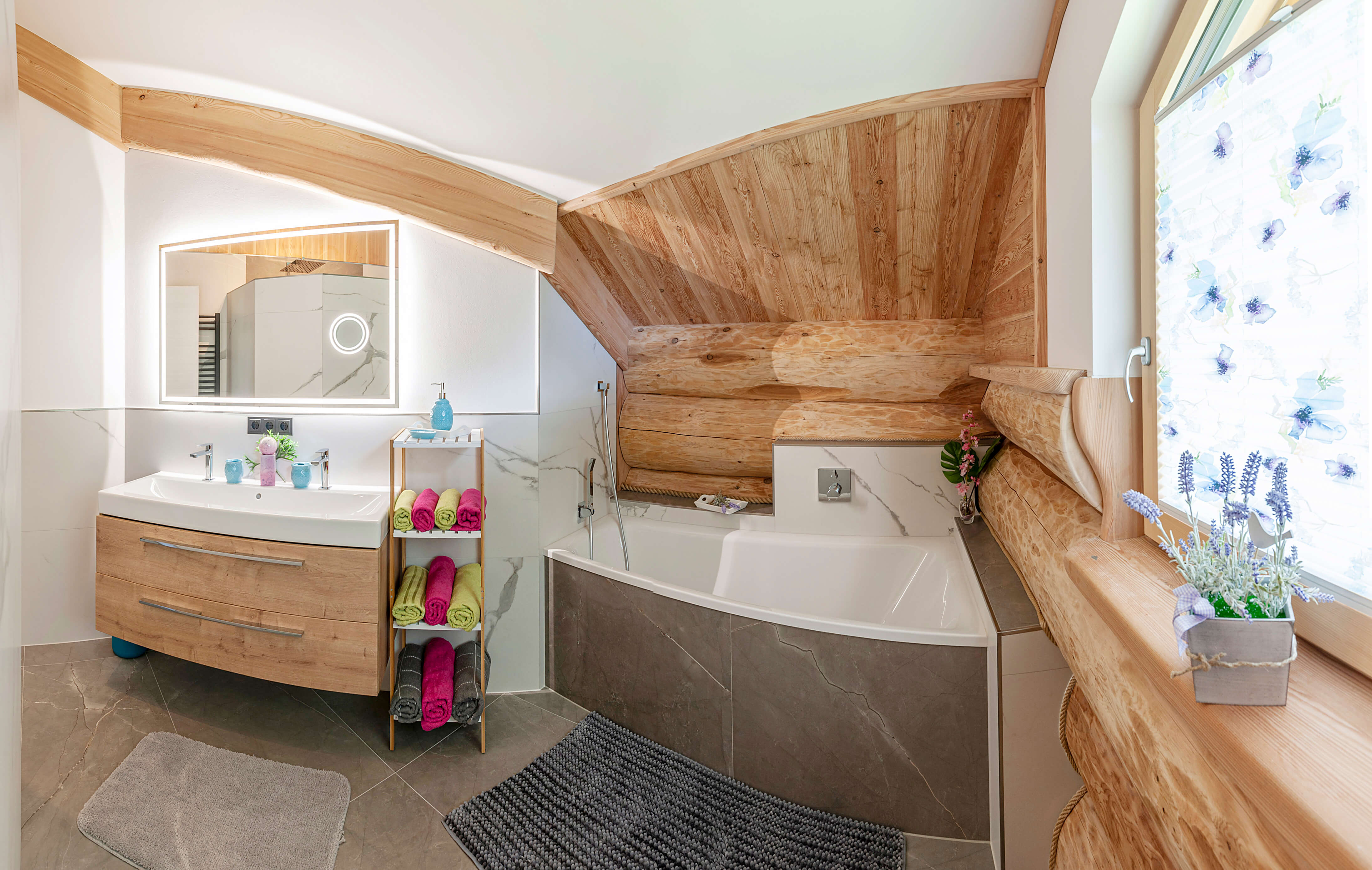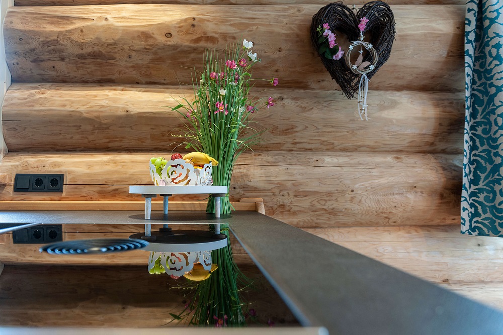 Mit dem handgefertigten Zedernblockhaus aus British Columbia hat sich der Eigentümer seinen Traum erfüllt. Das massive Holz strahlt Ruhe aus und wartet mit allem Komfort auf Sie: Im Erdgeschoss regiert Wohnen und Leben. Die großzügige Wohnküche geht nahtlos zur Terrasse über, wo Sie warme Sommernächte genießen werden, den Grill anheizen können und den Tag ausklingen lassen.