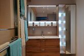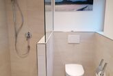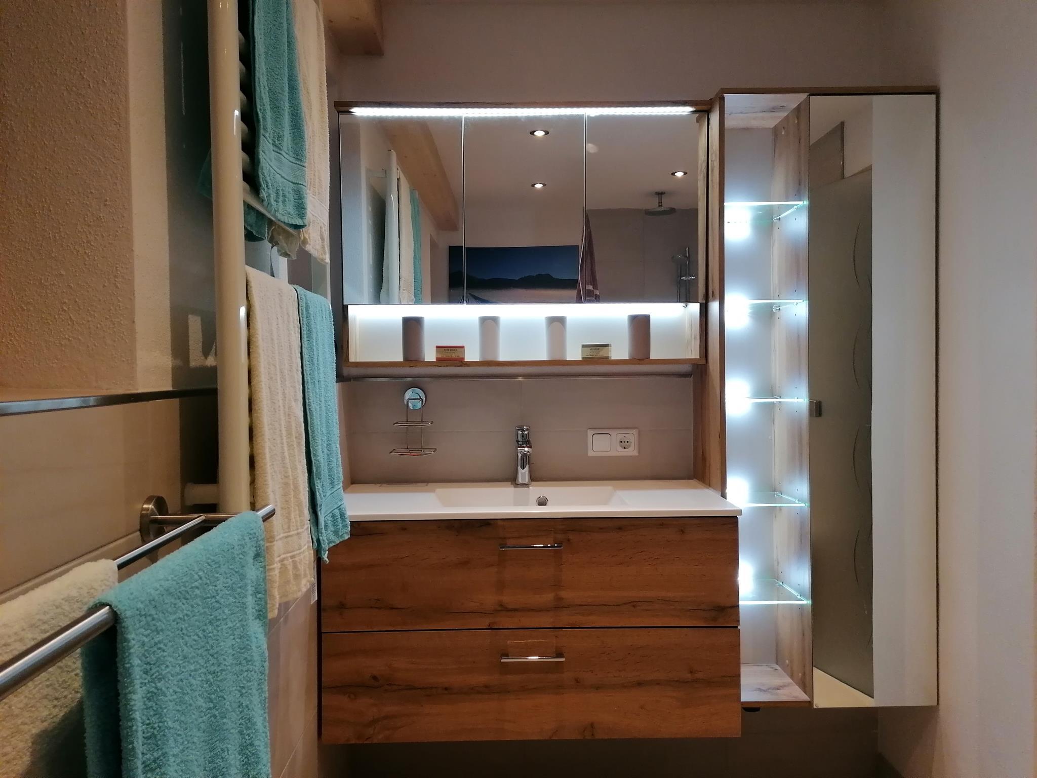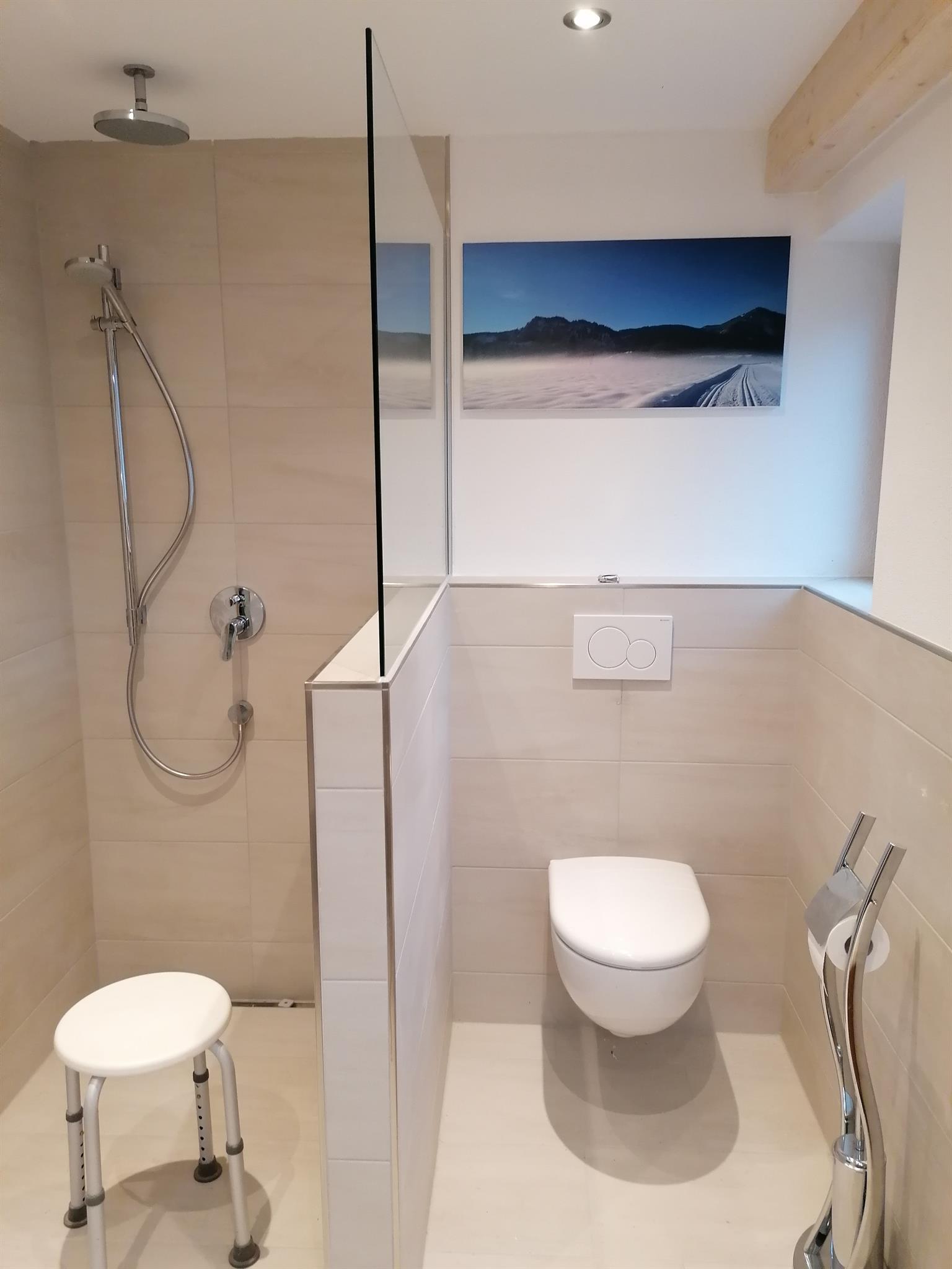 Das Bad hat eine ebenerdige Dusche