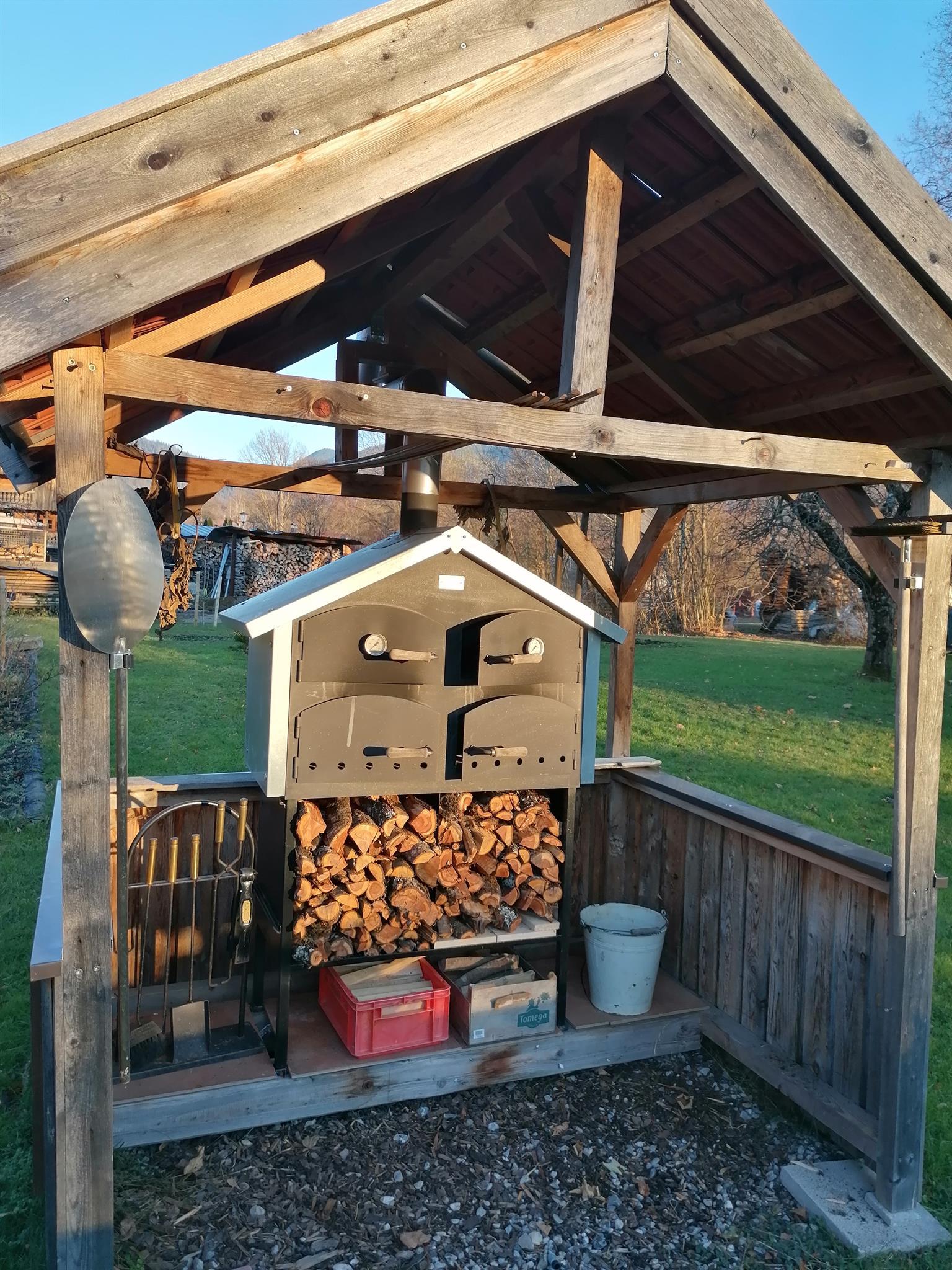 Ein Brot/ Pizzenofen stehen im Garten zur Verfügung
