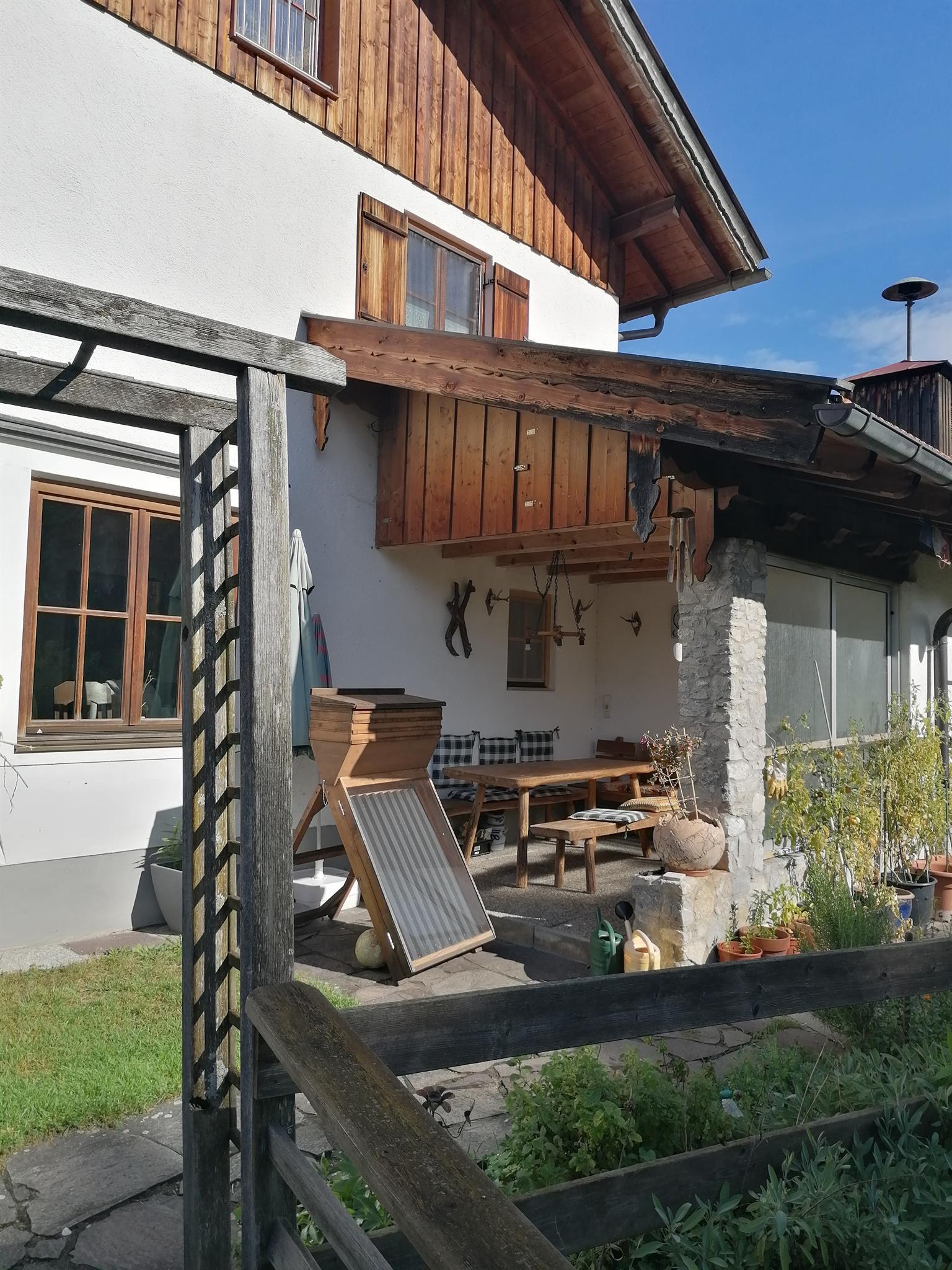 Die Ferienwohnung liegt im südlichen Ortsteil Anger. Durch das Grundstück fließt ein kleiner Bach. Über der Brücke gibt es einen Holzbrotbackofen. Grillplatz ist vorhanden. Zur Isar und Radwanderweg sind es nur wenige Meter.