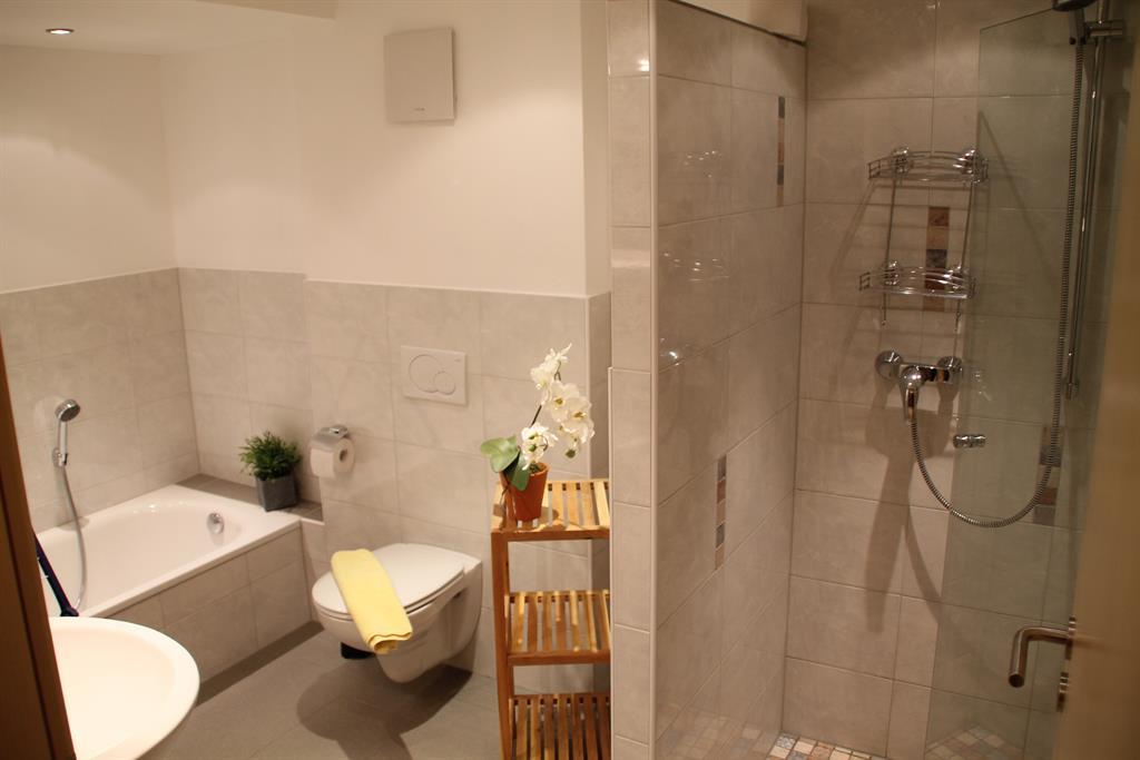 Unsere sehr geräumigen FeWos verfügen, je über eine komplett ausgestattete Wohn-Küche(E-herd mit Backofen, Geschirrspüler, Wasserkocher, Flachbildfernseher,ect.) die für bis zu fünf Personen reichlich Platz bieten. Im Badezimmer befinden sich neben einer großzügigen Dusche auch Badewanne, Föhn, Handtuchtrockner und Kosmetikspiegel. Die jeweils zwei seperaten Schlafzimmer verfügen über ein Doppelbett und großen Kleiderschrank.