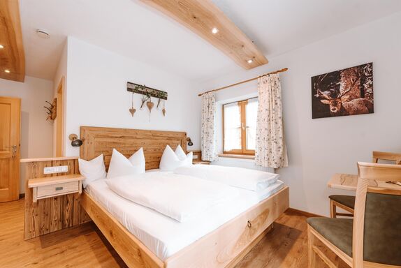 Gemütliches 4-Sterne Doppelzimmer im bäuerlichem Landhausstil eingerichtet, mit DU/WC/Sat-TV, Kühlschrank, Balkon mit Berg und Waldblick. Absolut ruhig.