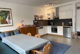 Vollausgestattete Küche mit Spülmaschine, Kühlschrank mit Gefrierabteil, Wasserkocher, Toaster, Kaffeemaschine, Backofen, Ceranfeld