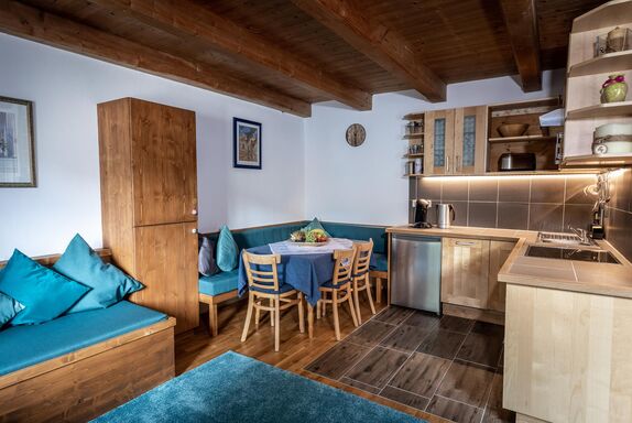 Vollausgestattete Küche mit Spülmaschine, Kühlschrank mit Gefrierabteil, Wasserkocher, Toaster, Kaffeemaschine, Backofen, Ceranfeld