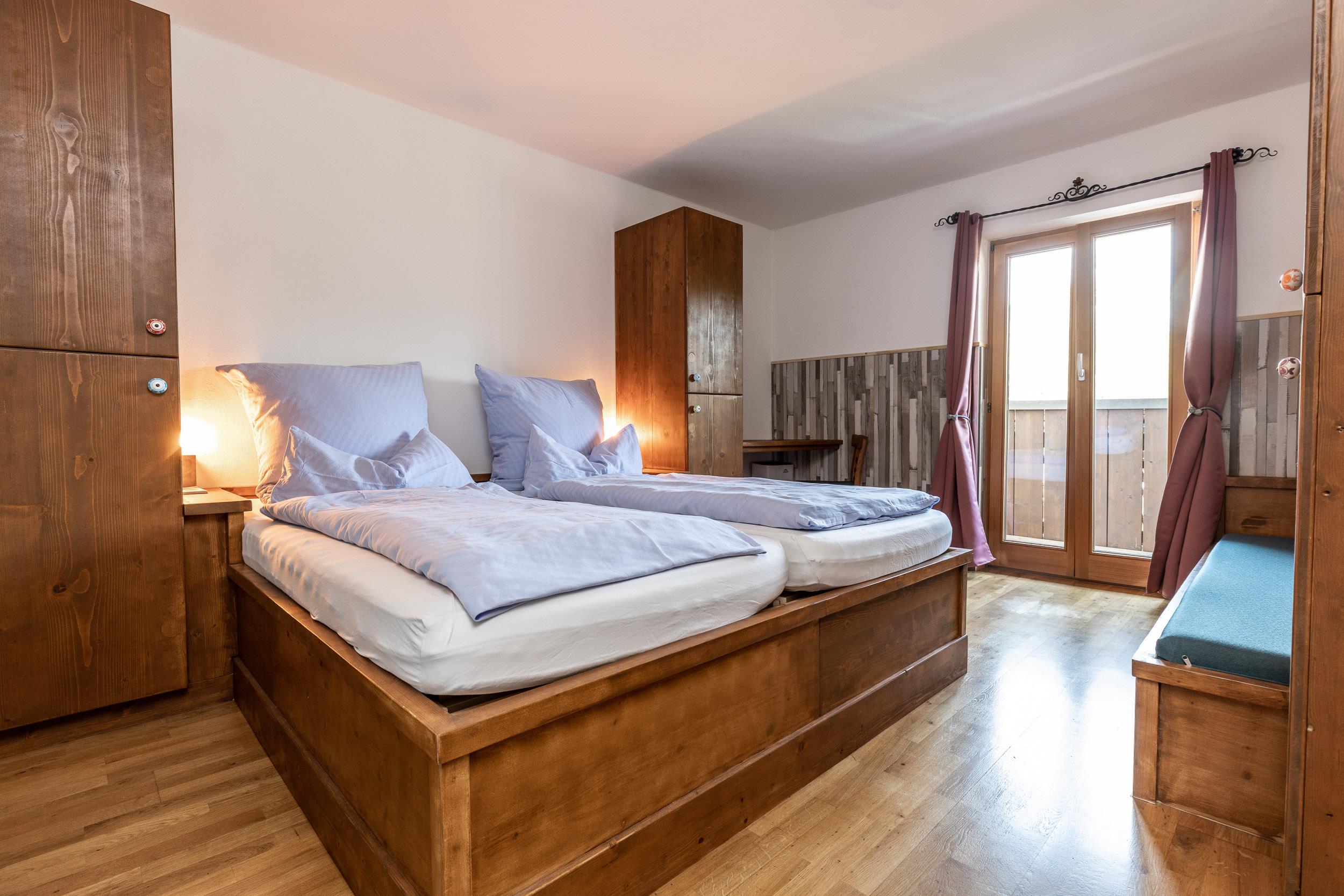 1 Schlafzimmer für 2 Personen mit Doppelbett und Balkon