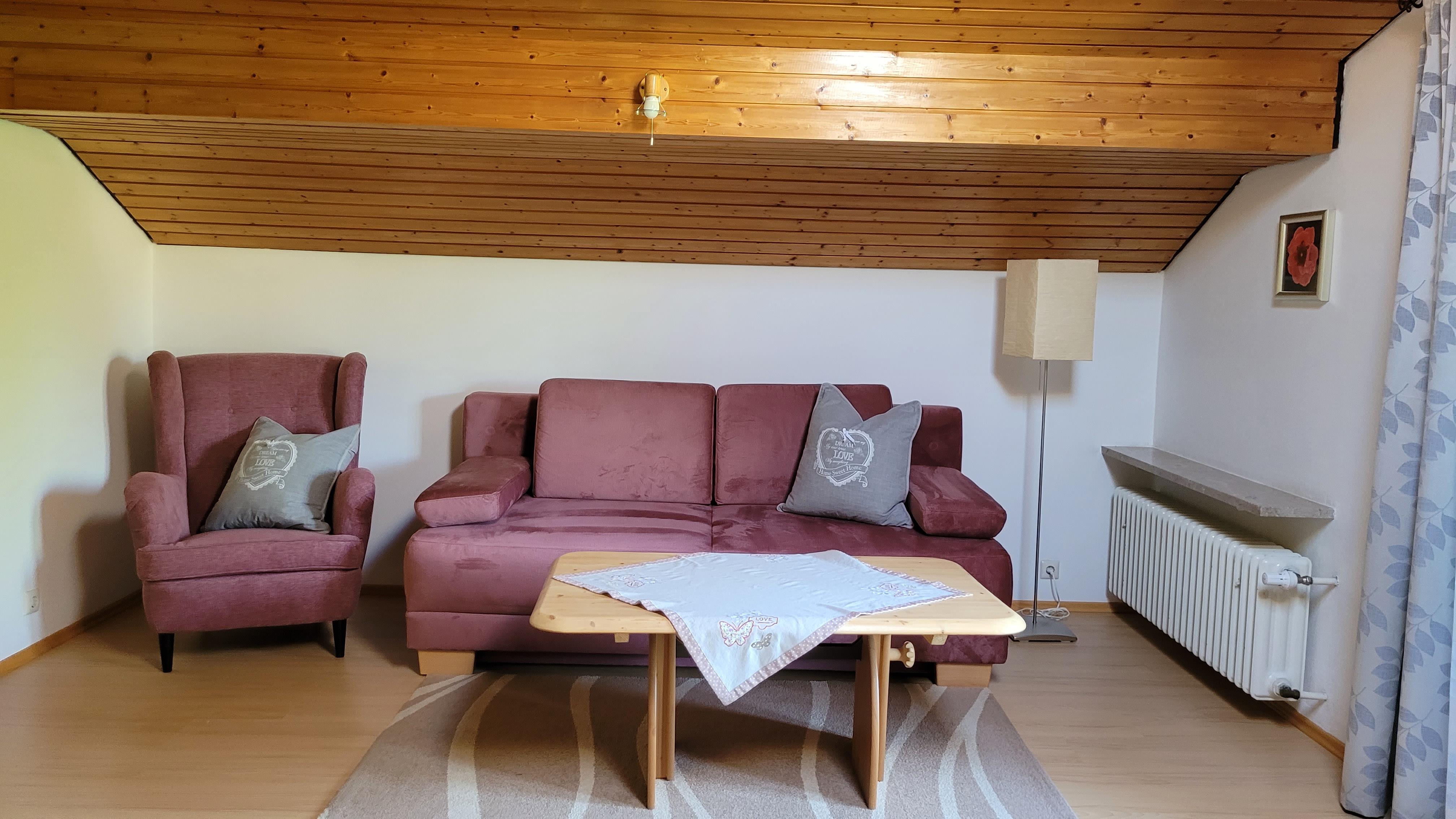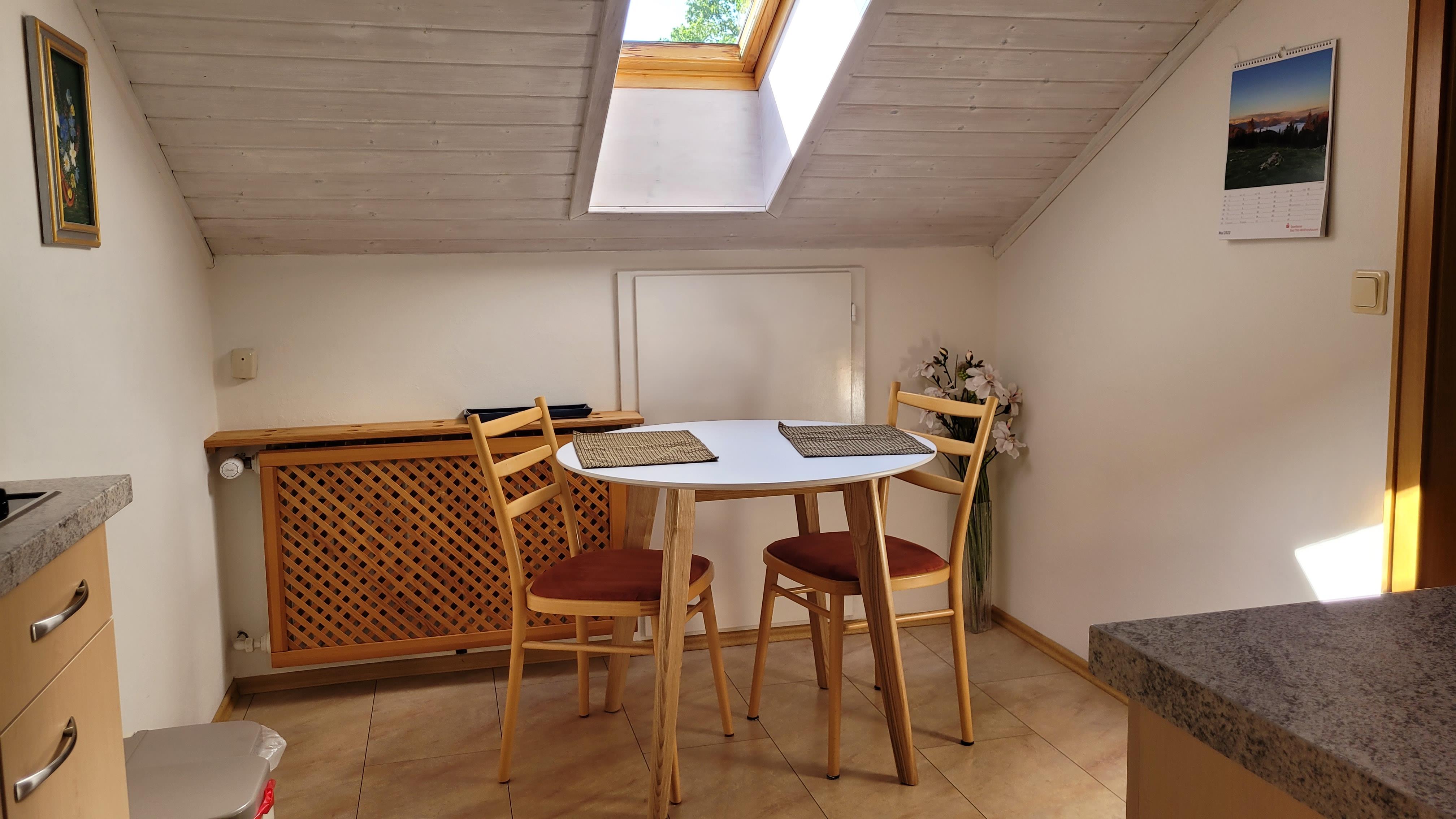 Die Dachwohnung bietet Ihnen ein Schlafzimmer mit Doppelbett und Südbalkon; Küche mit kompletter Koch- und Geschirrausstattung, Minibackofen, Kaffeemaschine, Wasserkocher, Toaster, Kühlschrank mit kleinem Gefrierfach; Wohnzimmer mit Polstergarnitur und Westbalkon; sowie Dusche WC, Zentralheizung. Die komplette Wäsche (Handtücher, Bettwäsche, Geschirrtücher) werden Ihnen zur Verfügung gestellt. Wir legen großen Wert auf Gemütlichkeit, damit sie sich bei uns wie zu Hause fühlen. Wir würden uns freuen, wenn wir Sie als Gäste begrüßen dürfen. Bitte besuchen Sie für weitere Informationen unsere Website www.fw-simon-lenggries.de