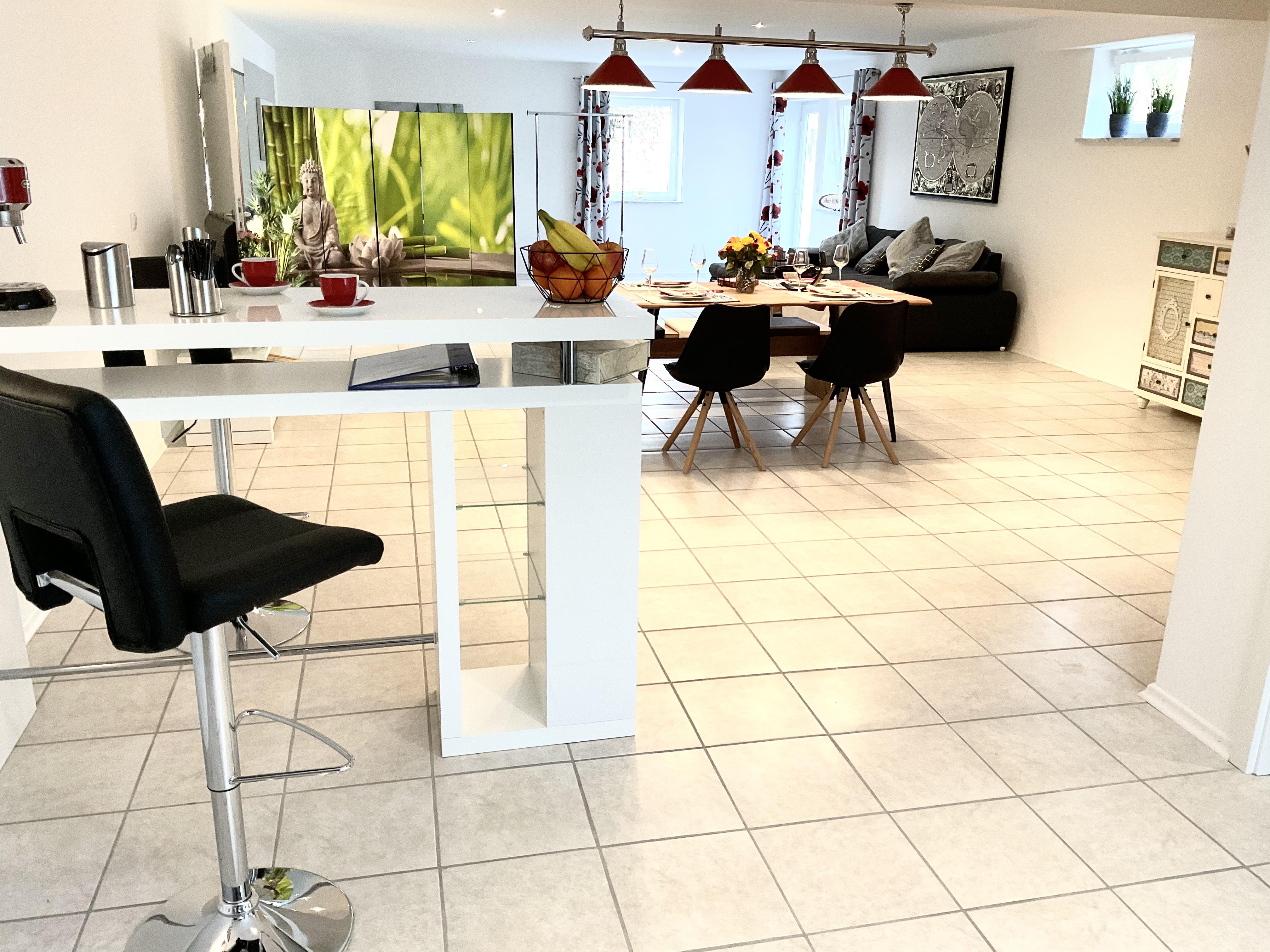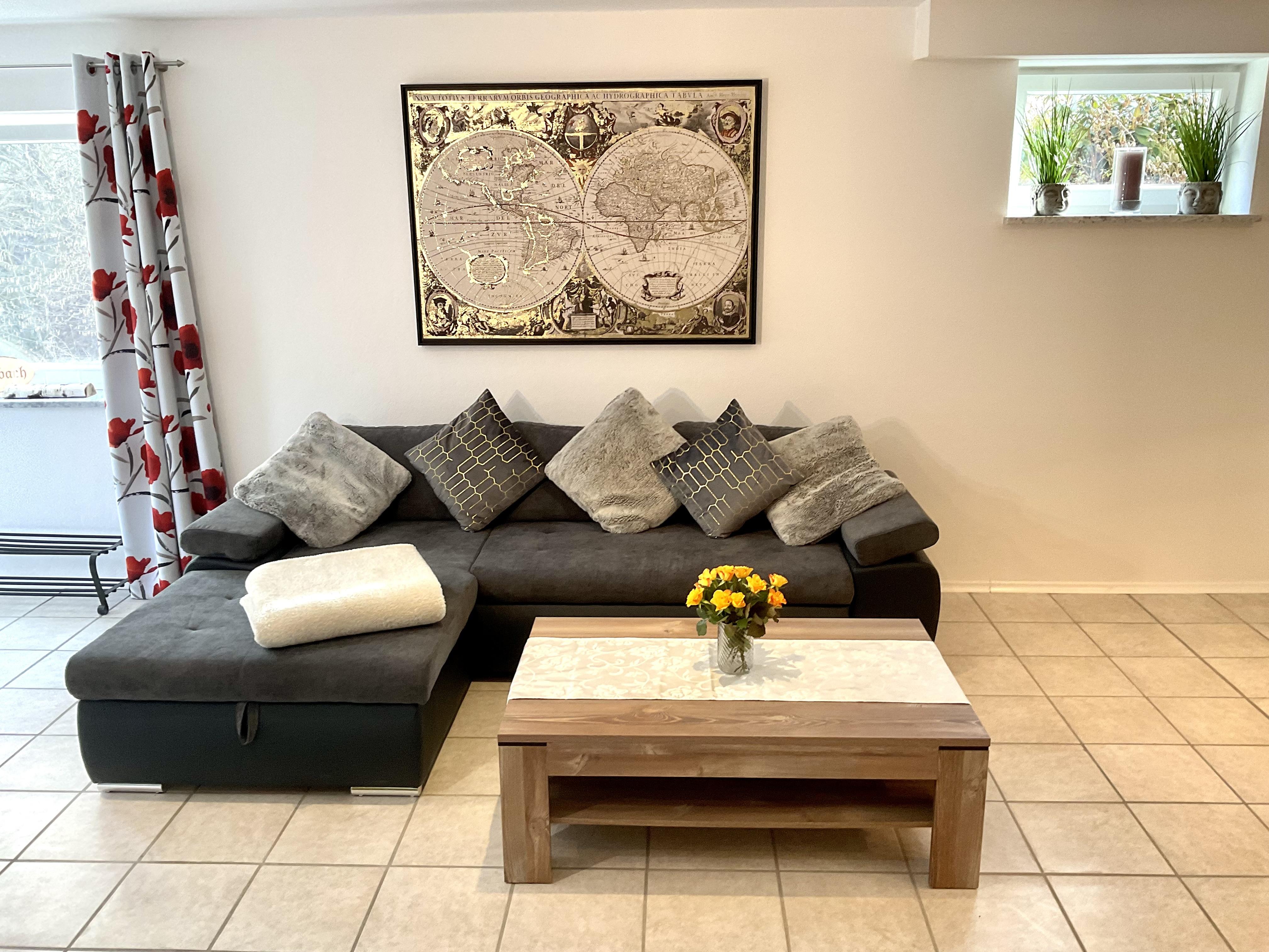 Die Wohnung ist ausgestattet mit 180cm Doppelbett (plus Schlafcouch), einem Bad mit Regenwald- und Massagedusche, einem schnellen, kostenlosen und stabilen Internetanschluss (300 MB), einem Online Arbeitsplatz, smartem HDTV mit Prime Video, einer vollausgestatteten Küchenzeile zum Kochen, Espresso- und Senseo Kaffeemaschine für den Kaffeegenuss am Morgen und zwischendurch.