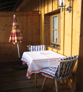 Die Ein-Raum-Wohnung verfügt über ein Bad mit Dusche/WC. In der kleinen Kochecke mit 2-Platten-Herd können Sie kleine Mahlzeiten zubereiten. Im Wohn-/Schlafraum befindet sich noch eine kleine Eßecke. Vom Balkon aus haben Sie einen herrlichen Ausblick auf die umliegende Bergwelt. Frühstück auf Anfrage.