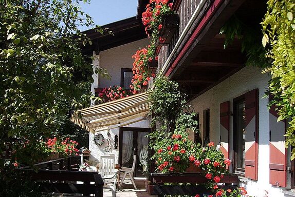 Der Eschenhof in Reit im Winkl bietet Ihnen komfortabel eingerichtete Zimmer und Appartements mit Terrasse bzw. Balkon. Wenn Sie im Urlaub auf Ihren Laptop nicht verzichten möchten, dann steht Ihnen Wireless-LAN im gesamten Haus zur Verfügung. Insgesamt verfügt der Eschenhof über 18 Betten, die sich auf Doppelzimmer, Dreibettzimmer und zwei 2-Raum-Appartements verteilen. Die Lage des familiär geführten Hauses erlaubt einen herrlichen Blick auf das schöne Kaisergebirge und die umliegende Bergwelt. Als Nichtraucherhaus achten wir nicht nur auf gesunde Luft, die gesunde Ernährung ist ebenfalls ein großes Thema für uns. Daher finden Sie am reichhaltigen Frühstückbuffet selbstverständlich auch eine Bio-Ecke. So steht einem vitalen Start in den Urlaubstag nichts mehr im Wege. Die Sonnenhungrigen unter Ihnen finden entweder auf der Sonnenterrasse oder auf der Liegewiese Entspannung pur. Das Plätschern des Bachlaufs, der sich durch den Garten schlängelt, beruhigt die angespannten Nerven und lädt zu Naturbeobachtungen ein. Auch Ihr Auto hat bei uns Urlaub. In fünf bis zehn Gehminuten erreichen Sie die Ortsmitte mit Geschäften und Freizeiteinrichtungen.