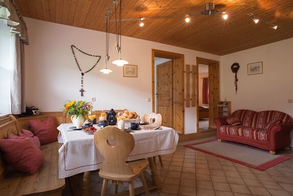 Das Ferienhaus mit fünf Ferienwohnungen für zwei bis fünf Personen liegt ca. 30 m von unserem Bauernhof entfernt, in sehr sonniger, ruhiger Lage abseits des Straßenverkehrs, umgeben von Wiesen und Wäldern, mit Blick auf die Berg. Gartenanlage mit gemütlichem Gartenhäuschen und Grillplatz. Alle Ferienwohnungen sind mit 4 Sternen klassifiziert und komfortabel ausgestattet. Der Hof wird nur noch im Nebenerwerb bewirtschaftet; es leben u.a. vier Miniponys, Schafe, Kaninchen und Katzen auf dem Hof.