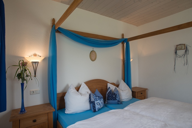Die exclusive, 30 qm große 4-Sterne-Ferienwohnung ist mit massiven Echtholzmöbeln, einem separaten Schlafzimmer mit Himmelbett, Wohnküche mit Fußbodenheizung, Sat-TV, Videorecorder, Radio sowie Dusche/WC, ebenfalls mit Fußbodenheizung ausgestattet. Auf der überdachten Terrasse mit Gartenmöbel können Sie Ihren Urlaub nach Herzenslust genießen. Leider können in dieser Wohnung keine Haustiere aufgenommen werden.