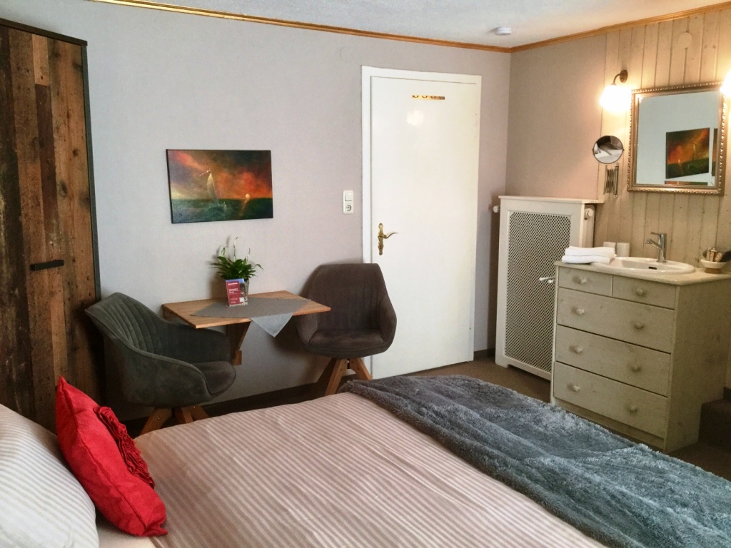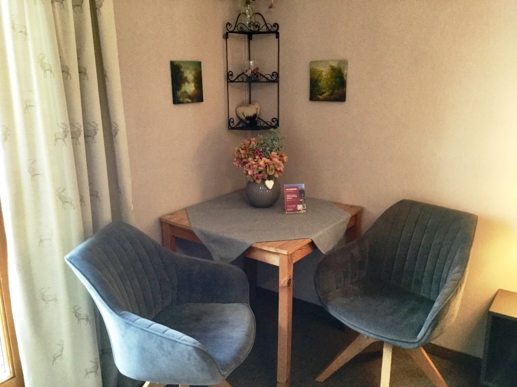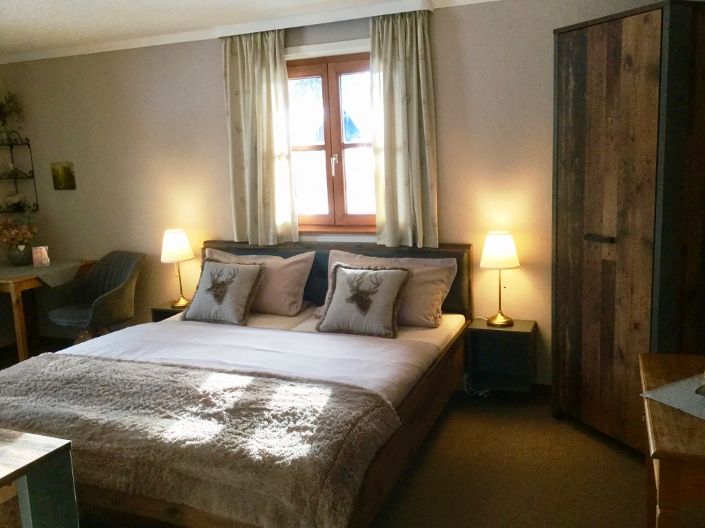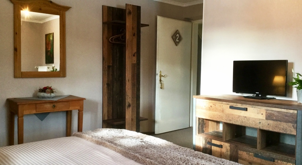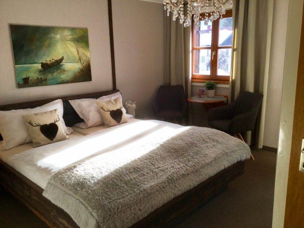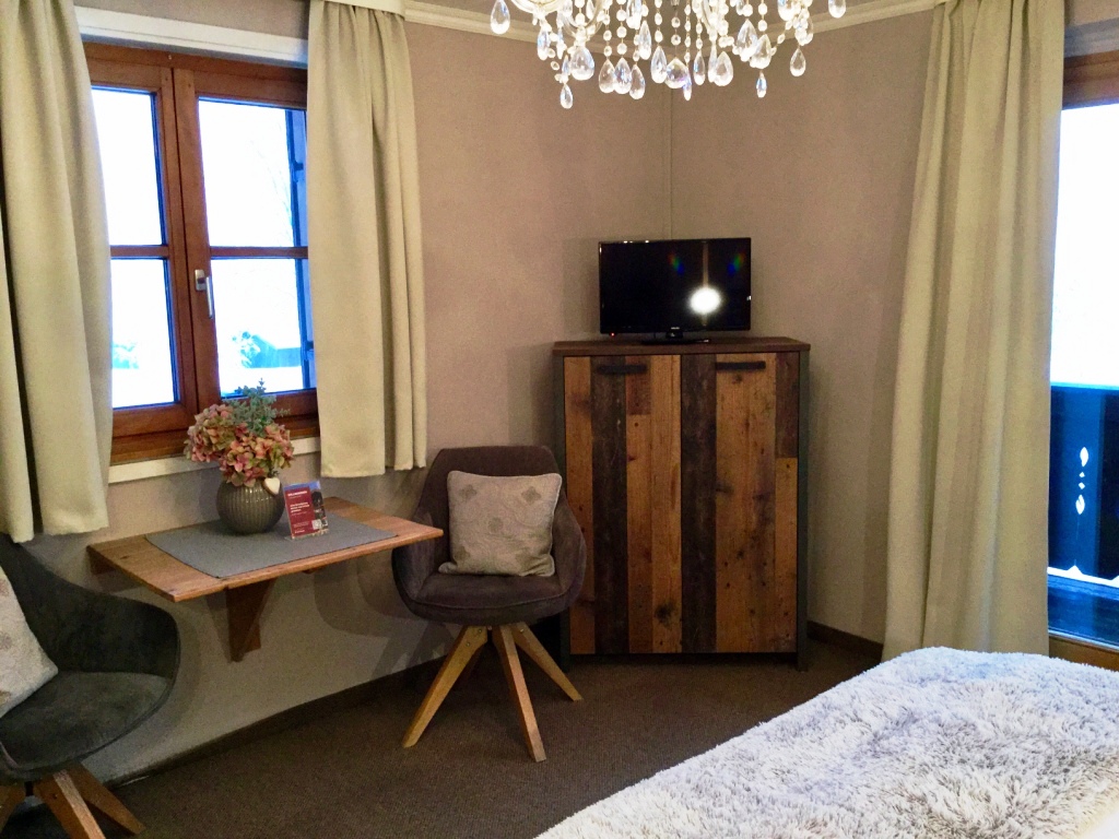 DZ mit Du/WC, TV. und Balkon. Herrliche Aussicht auf Wiesen, Loipen, Dorfzentrum und den Wilden Kaiser.