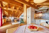 Unsere gemütliche 2-Raum-Wohnung verfügt über einen großen Wohnbereich mit offener Küche und Essecke. Die Fensterfront und der Sichtdachstuhl machen sie besonders hell und behaglich. Balkon mit Blick zum Ort. Zwei TV-Geräte (Wohnzimmer u.Schlafzimmer), Bad mit Fußbodenheizung, ebenerdiger Duscheinstieg und Regendusche.