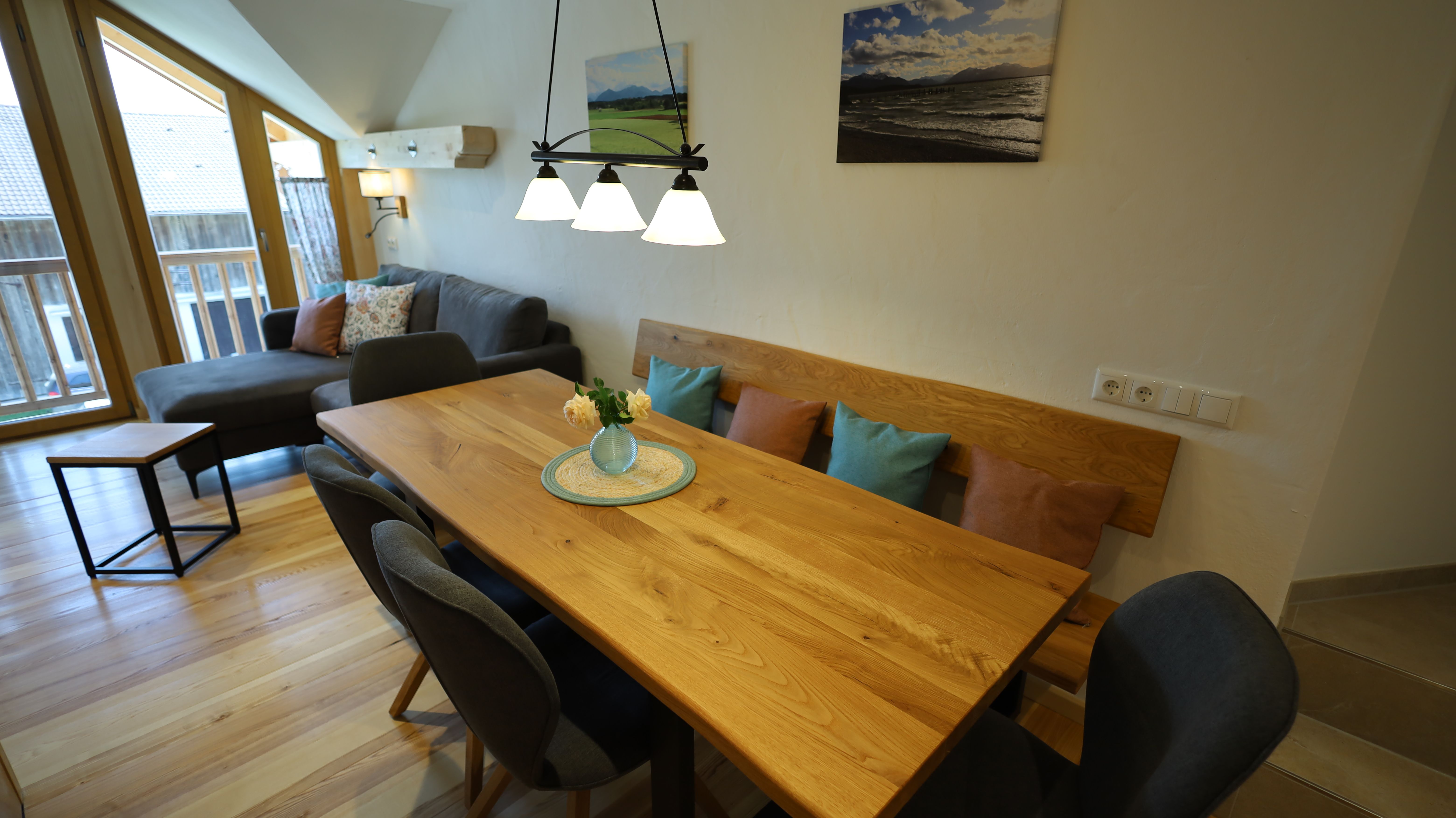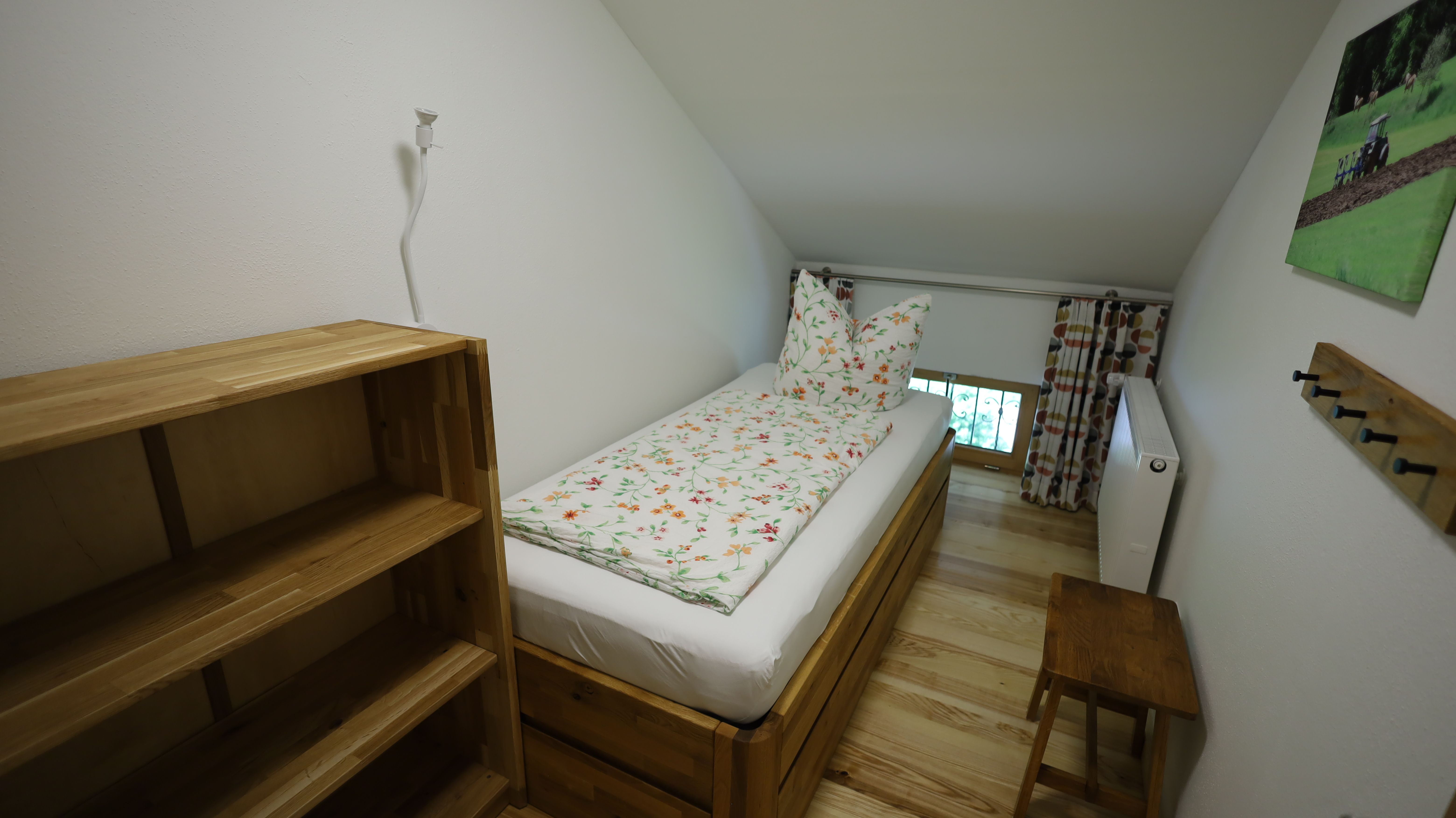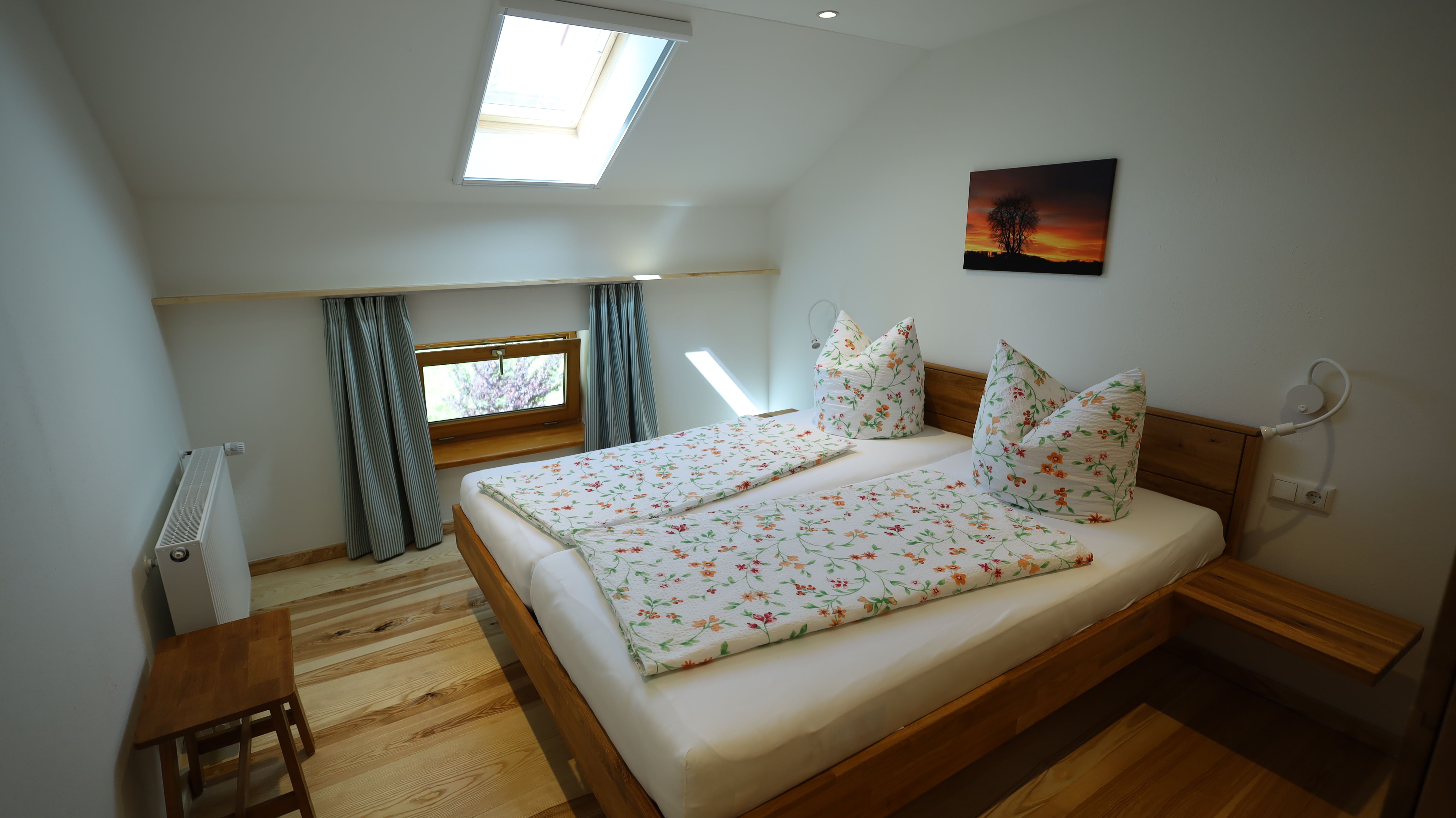 In der Ferienwohnung Kleeblatt, die für 2-6 Personen geegnet ist, werden Sie ein einzigartiges Wohnerlebnis erfahren. Das Besondere an dieser Wohnung ist die verwinkelte Bauweise, die sie so gemütlich macht. Zudem breitet sich die Ferienwohnung auf zwei Stockwerke aus. In der oberen Etage befindet sich ein Schlafzimmer, das meist von den Eltern im Urlaub mit Kindern genutzt wird. Die restlichen 2 Schlafzimmer befinden sich gemeinsam mit der Küche und dem Wohnzimmer im unteren Stockwerk.