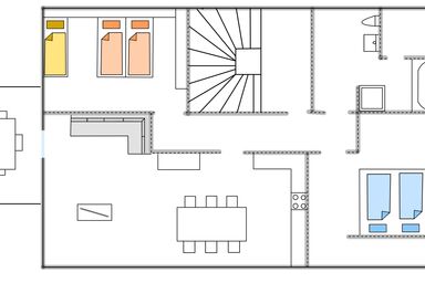 In der 3-Sterne Ferienwohnung Marienkäfer, die für 2-5 Personen geeignet ist, finden Sie ebenfalls 3 getrennte Schlafzimmer. 2 Schlafzimmer sind mit einem Doppelbett ausgestattet, das dritte Schlafzimmer verfügt über ein Bett mit einer Breite von 120cm. Der zentrale Punkt der Wohnung ist die geräumige Wohnküche, die Platz für die ganze Familie bietet.