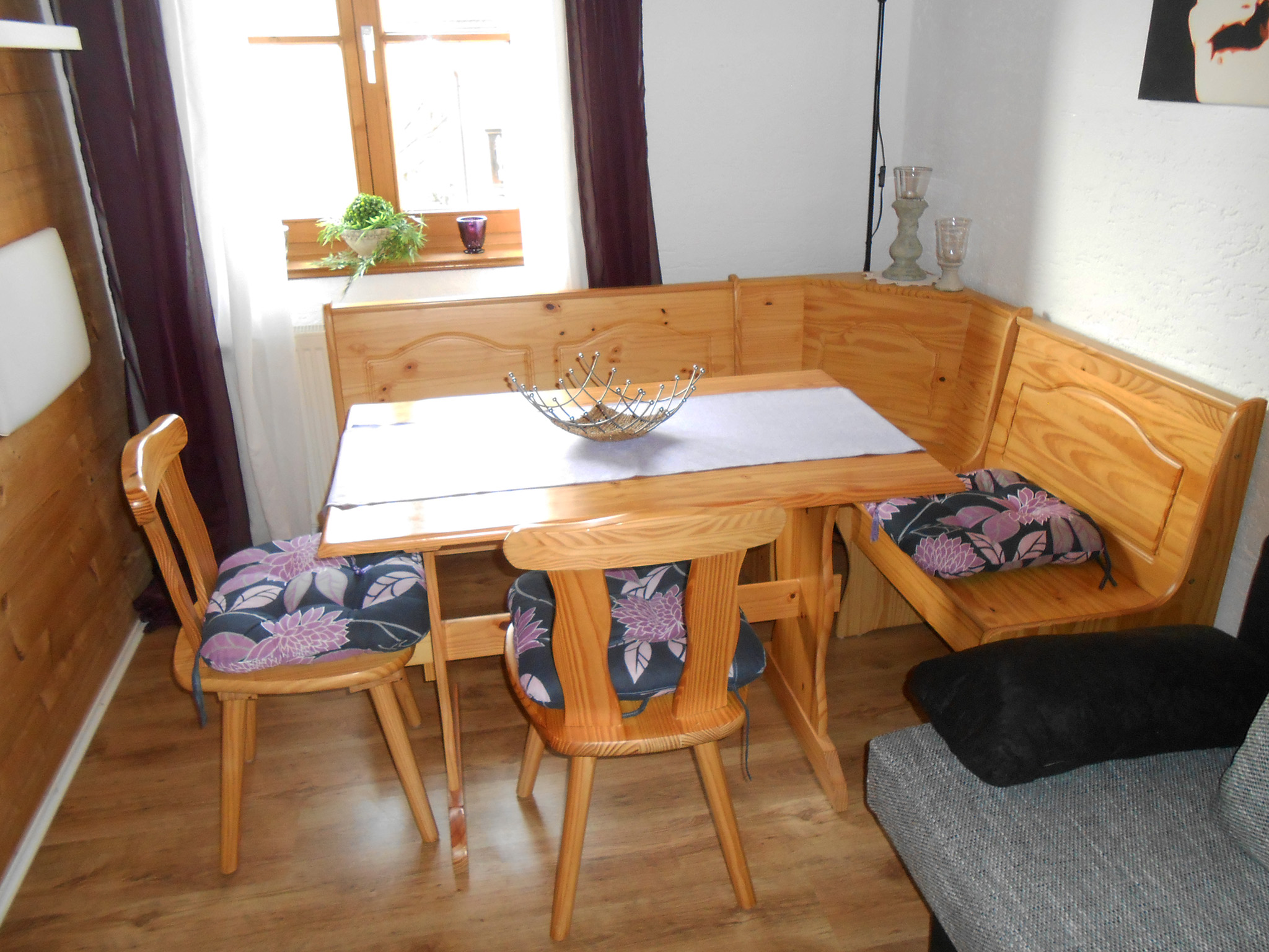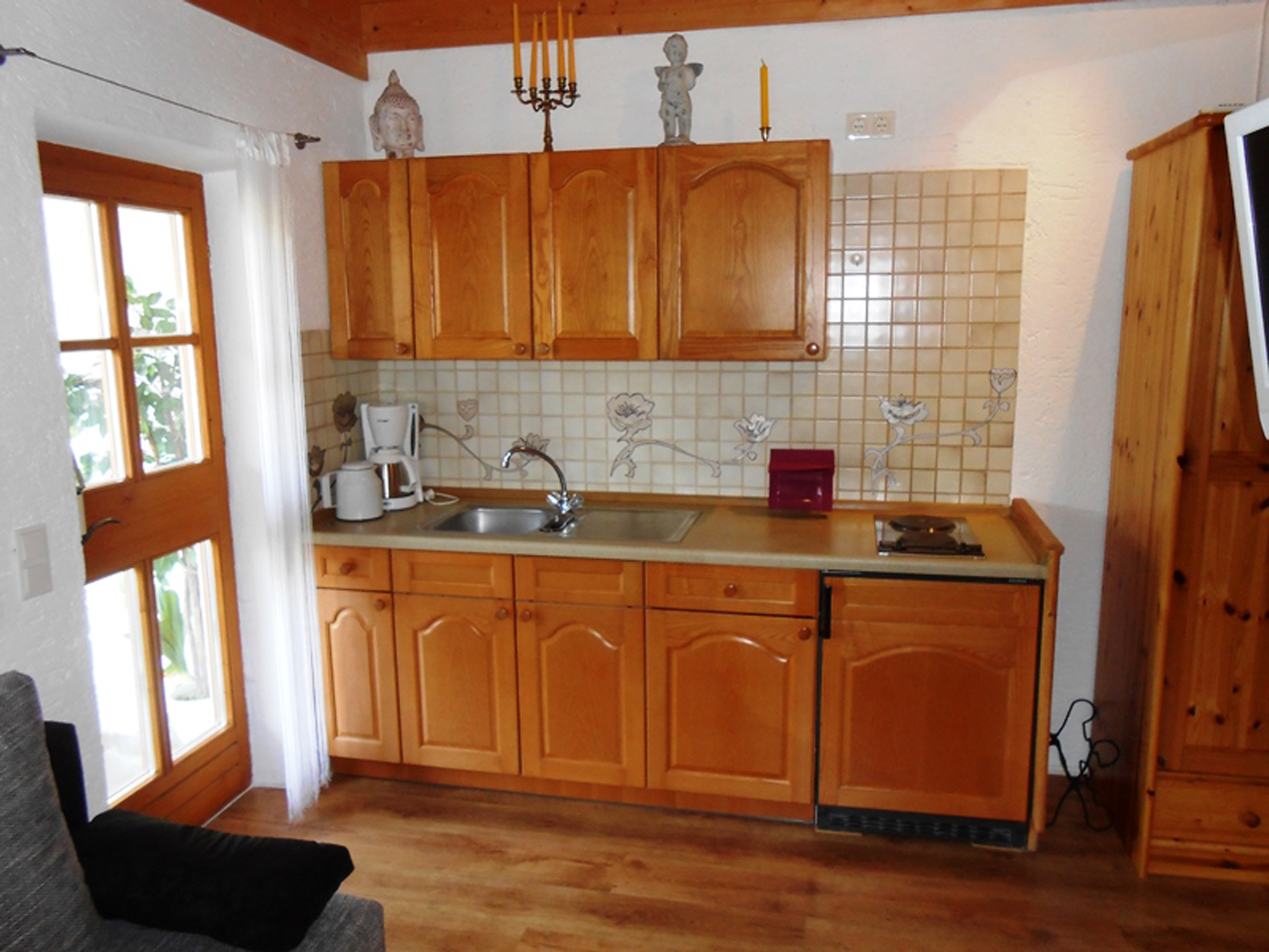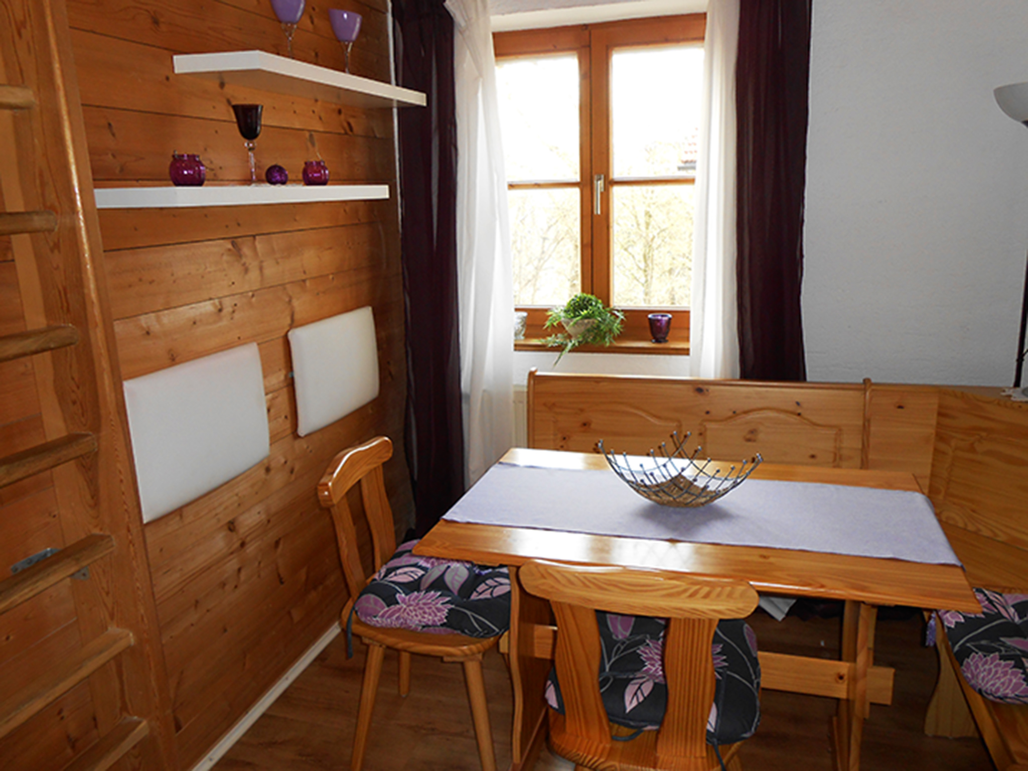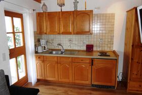 Kleine, gemütliche Ferienwohnung im 1. Stock eines Einfamilienhaus mit 30 m² Wohnfläche für bis zu 3 Personen. Die Wohnung verfügt über ein Schlafzimmer mit Doppelbett, eine Wohnküche mit voll ausgestatteter Küchenzeile, eine Essecke, eine ausziehbare Couch mit einen Flachbild-TV und ein Badezimmer.