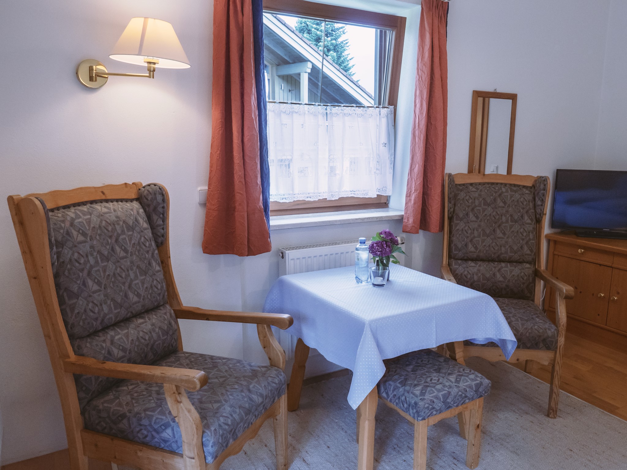 Unser Allergiker Appartement, ein schöner, großer Wohn-Schlafraum mit 35 qm, ist mit einem Fernseher, Radio und einem Safe ausgestattet. Es hat einen Südbalkon. Ein Parkettboden ist im gesamten Wohn-und Schlafbereich ausgelegt. Das Bad ist mit einer Dusche und WC ausgestattet. Ein Fön ist vorhanden. Sie gelangen über einen separaten Eingang in Ihre Unterkunft. Auf Anfrage reichen wir Frühstück, vorwiegend aus regionalen Produkten. Massage im Haus ist auf Bestellung möglich.