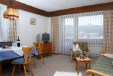 Gemütlich eingerichtete Drei-Raum Ferienwohnung unter dem Dach (2Doppelzimmer/ 1 Wohnzimmer mit Essecke und angrenzender Küche). Ideal für vier Personen. Zur komfortablen Ausstattung gehört Kabel-Fernsehen, eine Stereoanlage (Radio, CD, Kassette) und ein Telefonanschluß mit der Möglichkeit zur Internetanbindung mit mitgebrachtem Modem PC. Die Küche verfügt neben einem Vierplattenherd über eine Kaffee- und Spülmaschine. Toaster und Wasserkocher sind ebenfalls vorhanden. Das Badezimmer ist mit einer vollwertigen Badewanne ausgestattet. Zwei Balkone. Südbalkon mit Gartenmöbeln und Sonnenschirm. Freier Blick ins schöne Bergpanorama (Kaisergebirge).