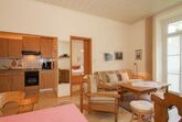 Wohn- und Schlafraum sind getrennt. Das Bad ist mit Dusche/WC ausgestattet. Eine integrierte Küche steht Ihnen im Wohnraum zur Verfügung. Über den gemütlichen Balkon erreichen Sie unsere hauseigene Liegewiese.