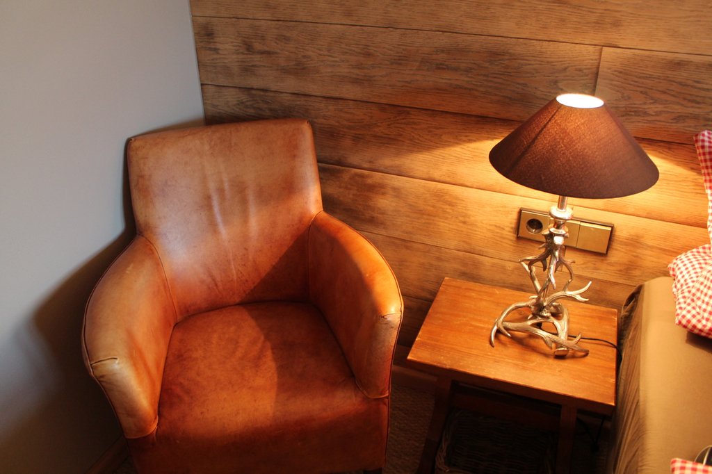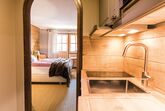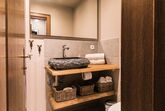 Das kleine Apartment im modernen Landhausstil besteht aus einem kombinierten Wohn-Schlafraum mit Doppelbett (180x200), Flat-Screen-TV, einem alten Bauernschrank und Holztisch, einer gut ausgestatteten Küchenzeile sowie einem modernen Bad mit Dusche, großem Spiegel und Steinwaschbecken.