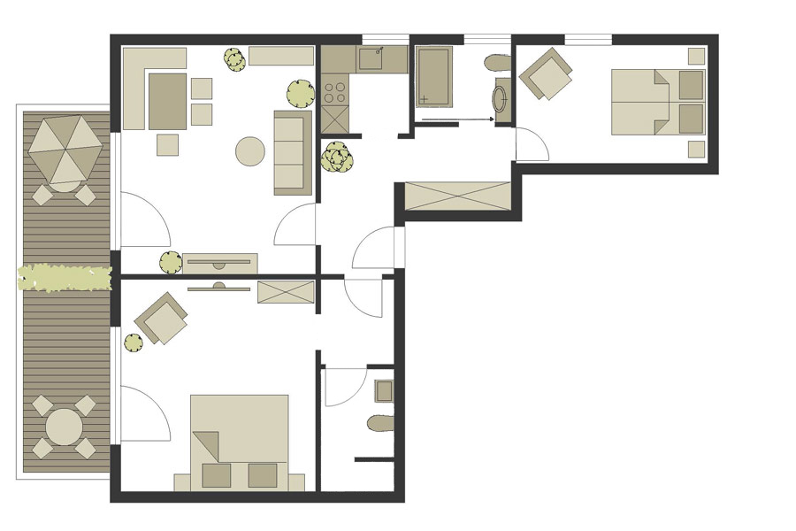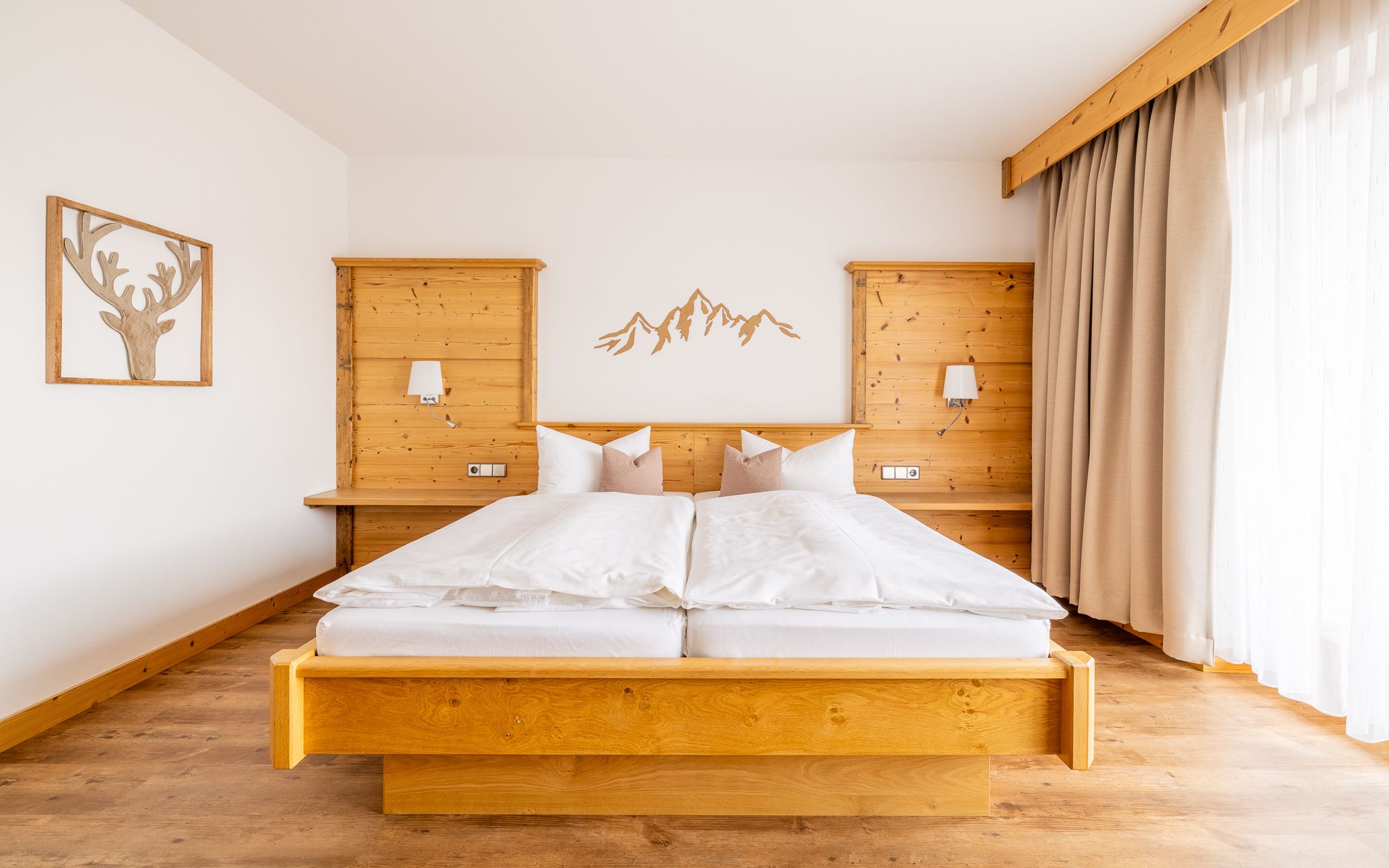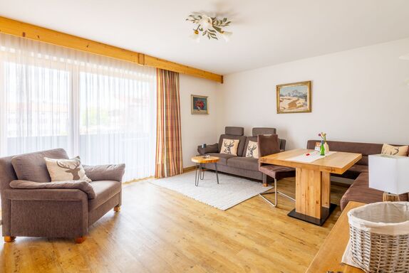 Wir verfügen über sonnige, große, mit viel Liebe zum Detail und Komfort komplett neu renovierte Ferienwohnungen mit Bergblick, die Sie einladen, sich zu entspannen und ein paar erholsame Tage in dieser herrlichen Gegend zu verbringen. Unsere Zweiraumwohnungen verfügen über Schlafzimmer mit Dusche/WC, die Dreiraumwohnungen über zwei separate Schlafzimmer mit Dusche/WC, nahezu alle zusätzlich mit Flat-TV im den Schlafzimmern. Alle neu renovierten Wohnungen haben moderne Einbauküchen mit Geschirrspüler, Backofen und 4-Platten-Cerankochfeld, gemütliche und sonnige Wohn-/Esszimmer, Flat-TV, große Balkone und vieles mehr.