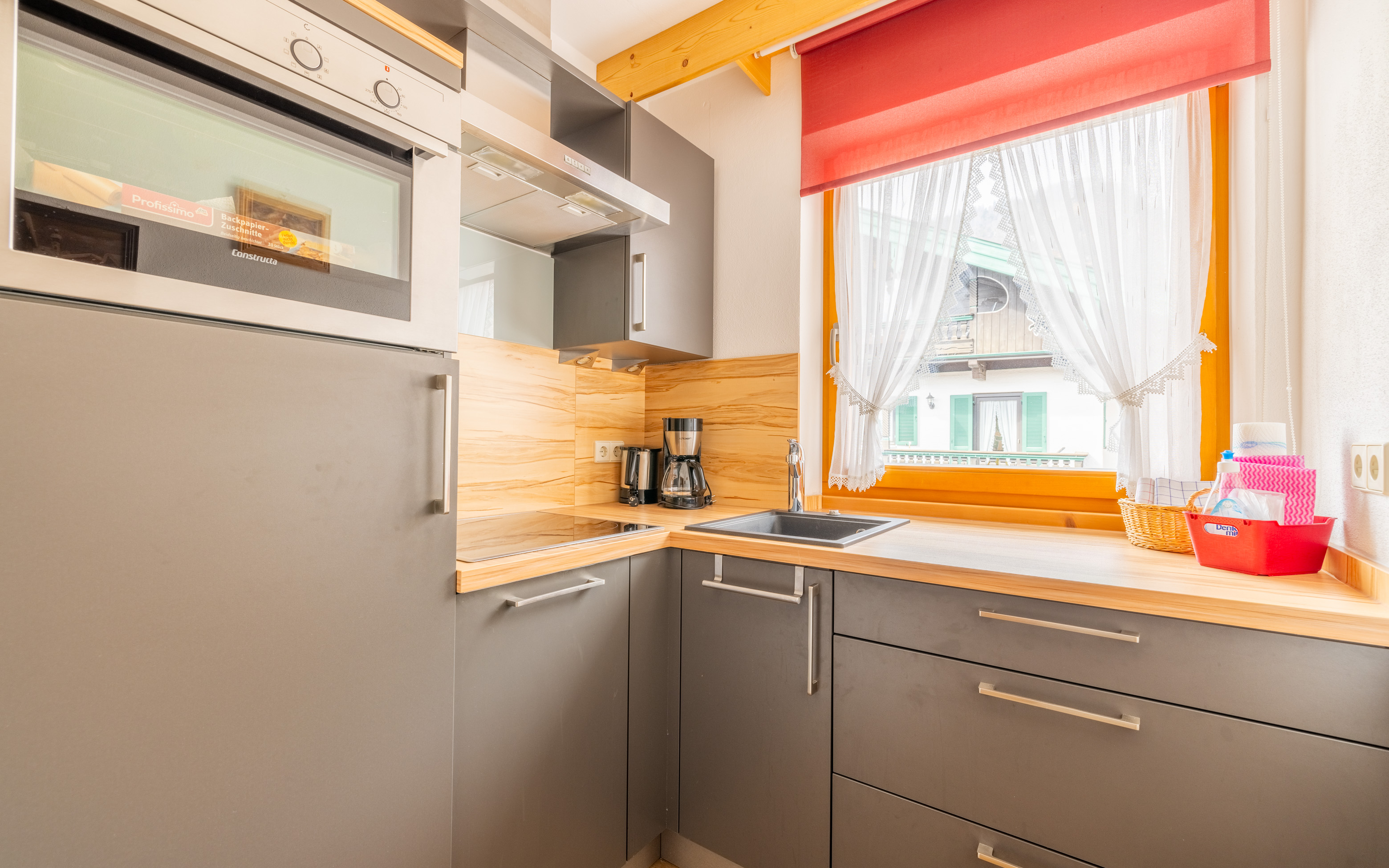 Die neu renovierte, großzügige 3-Raumwohnung liegt im 1. OG und hat eine Größe von ca. 71 qm. Vom sonnigen West-Balkon hat man einen wunderbaren Blick auf das Kaisergebirge und den Unterberg. Die exklusive Wohnung verfügt über zwei Schlafzimmer, jeweils mit DU/WC (Fußbodenheizung), eine hochwertige moderne Küche (mit Geschirrspüler, Backofen, 4-Platten-Ceranfeld, Kaffeemaschine, Toaster, uvm.) und ein schönes großes Wohn/Esszimmer mit Panoramafenster, einer gemütlichen Essecke und einer hochwertigen Couch.